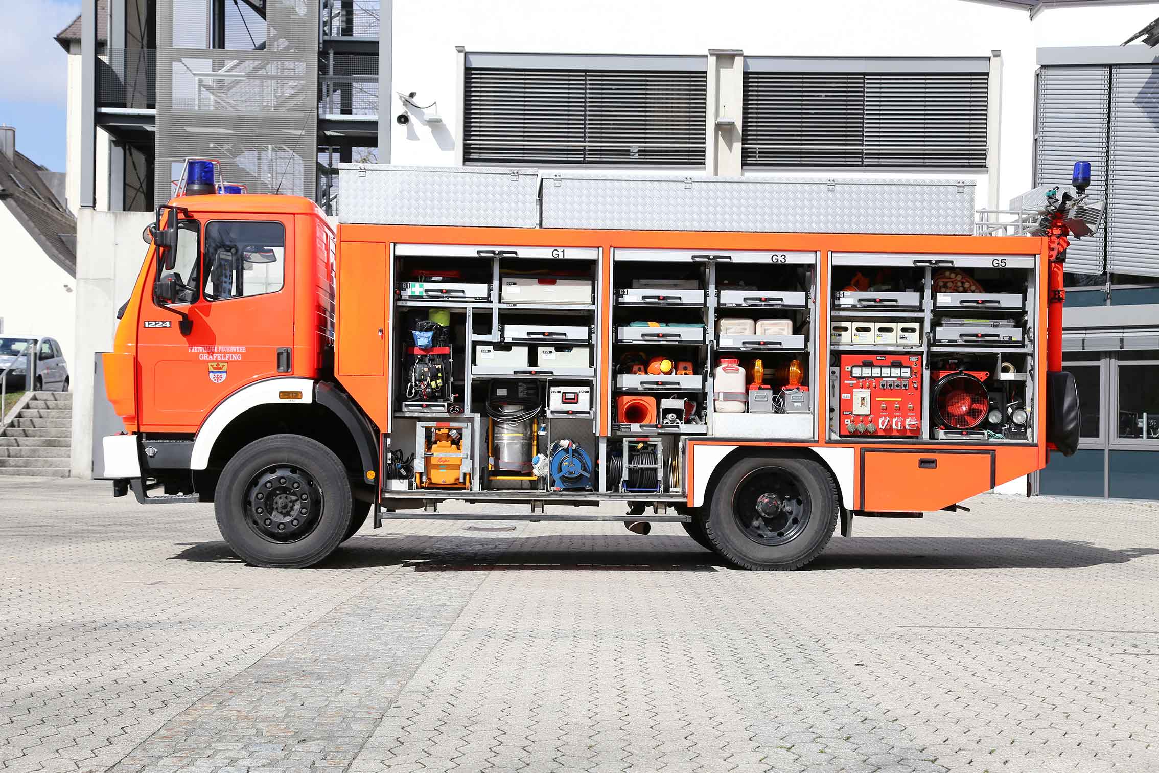 Der Rüstwagen ist nur für die Technische Hilfeleistung. Mit diesem Fahrzeug kann die FF Gräfelfing jede Art von technischer Hilfe leisten; z.B. bei Verkehrsunfällen, Überschwemmungen, Chemieunfällen, Hoch- und Tiefbauunfällen. Hierzu wird ein umfangreiches Sortiment verschiedener Spezialwerkzeuge mitgeführt. Zusammen mit einem der Löschfahrzeuge und insbesondere dessen Besatzung, kann somit jede Art von Einsatz abgearbeitet werden.