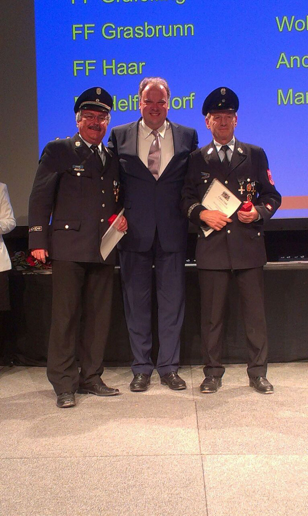 Jährlich gibt es einen Kreisfeuerwehrtag mit einer Fahrzeugausstellung und mit Ehrungen. An diesem Freitag fuhr eine starke Abordnung unserer Wehr nach Unterföhring. Gerhard Fuchs und Erich Bliemel wurden für 40 Jahre aktive Mitgliedschaft bei der Feuerwehr ausgezeichnet. Wir gratulieren den beiden Kameraden ganz herzlich und bedanken uns für ihr Engagement.