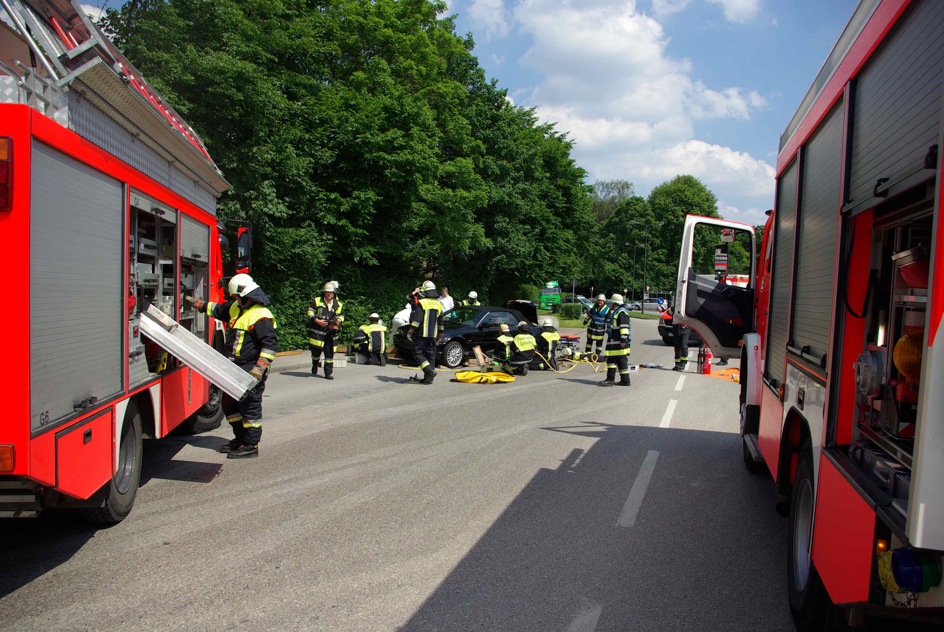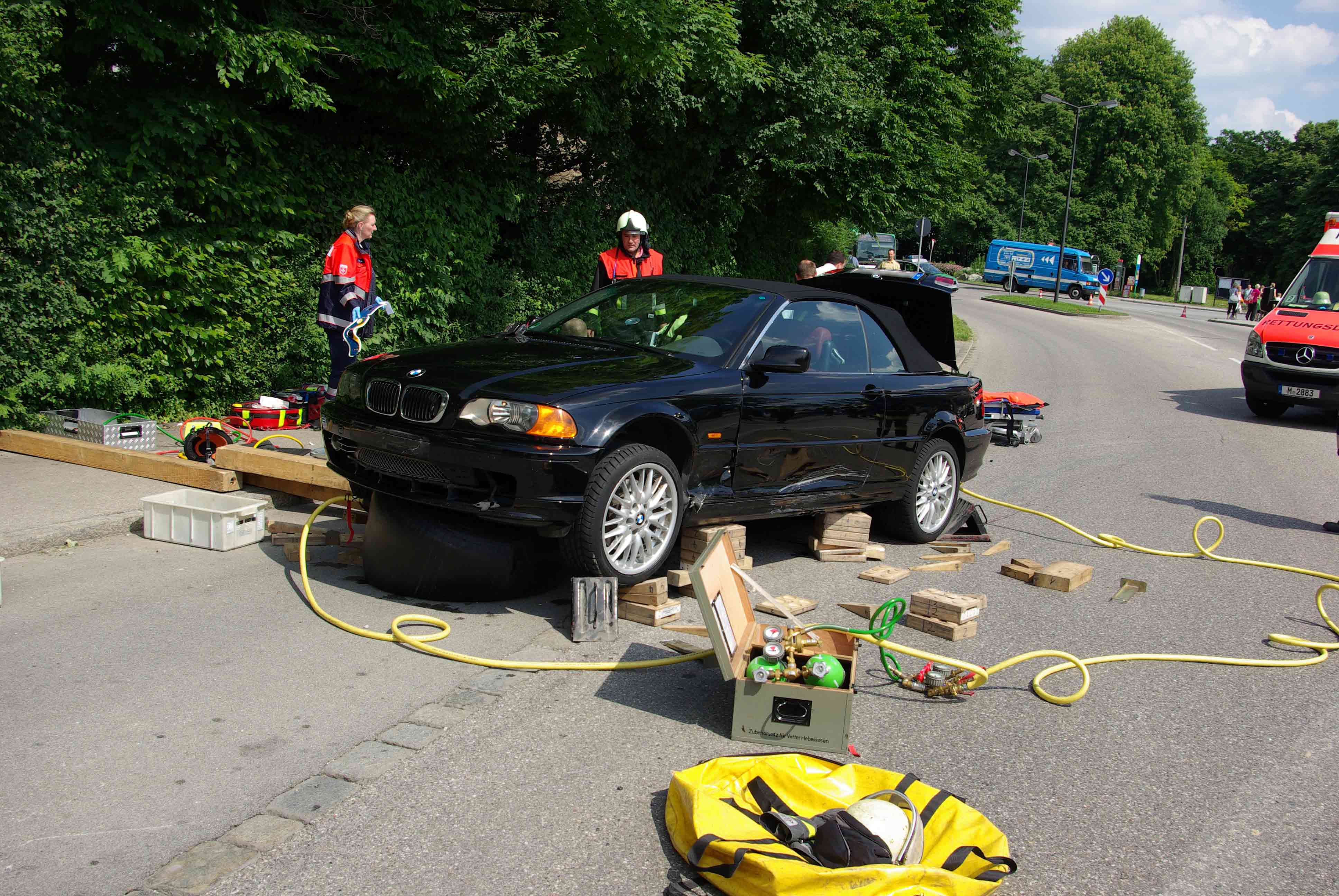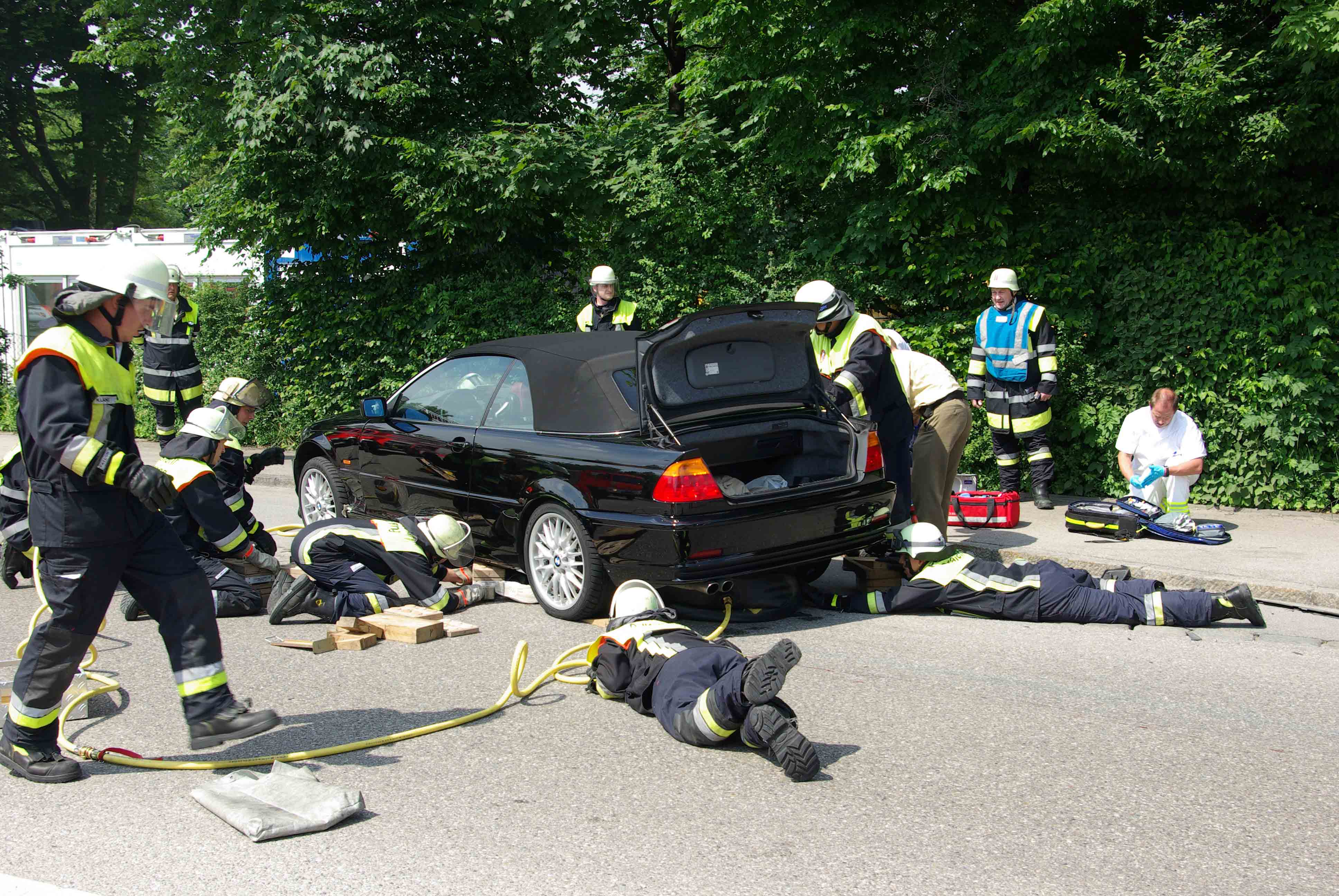 Zu einem schweren Verkehrsunfall in der Pasinger Straße wurde die Feuerwehr Gräfelfing am 25.06.2010 gerufen.Ein Rollerfahrer war bei einem Ausweichmanöver gestürzt, unter ein BMW Cabrio gerutscht und dort eingeklemmt - der herbeigerufene Rettungsdienst lies umgehend die Feuerwehr Gräfelfing zur Personenbefreiung alarmieren. Die zwei Minuten später eintreffenden Feuerwehrkräfte konnten den Rollerfahrer mittels pneumatischer Hebekissen schnell befreien, die anschließenden Reanimationsmaßnahmen blieben jedoch leider erfolglos. 33 Feuerwehrdienstleistende waren von 15:26 Uhr bis 18:46 Uhr im Einsatz.