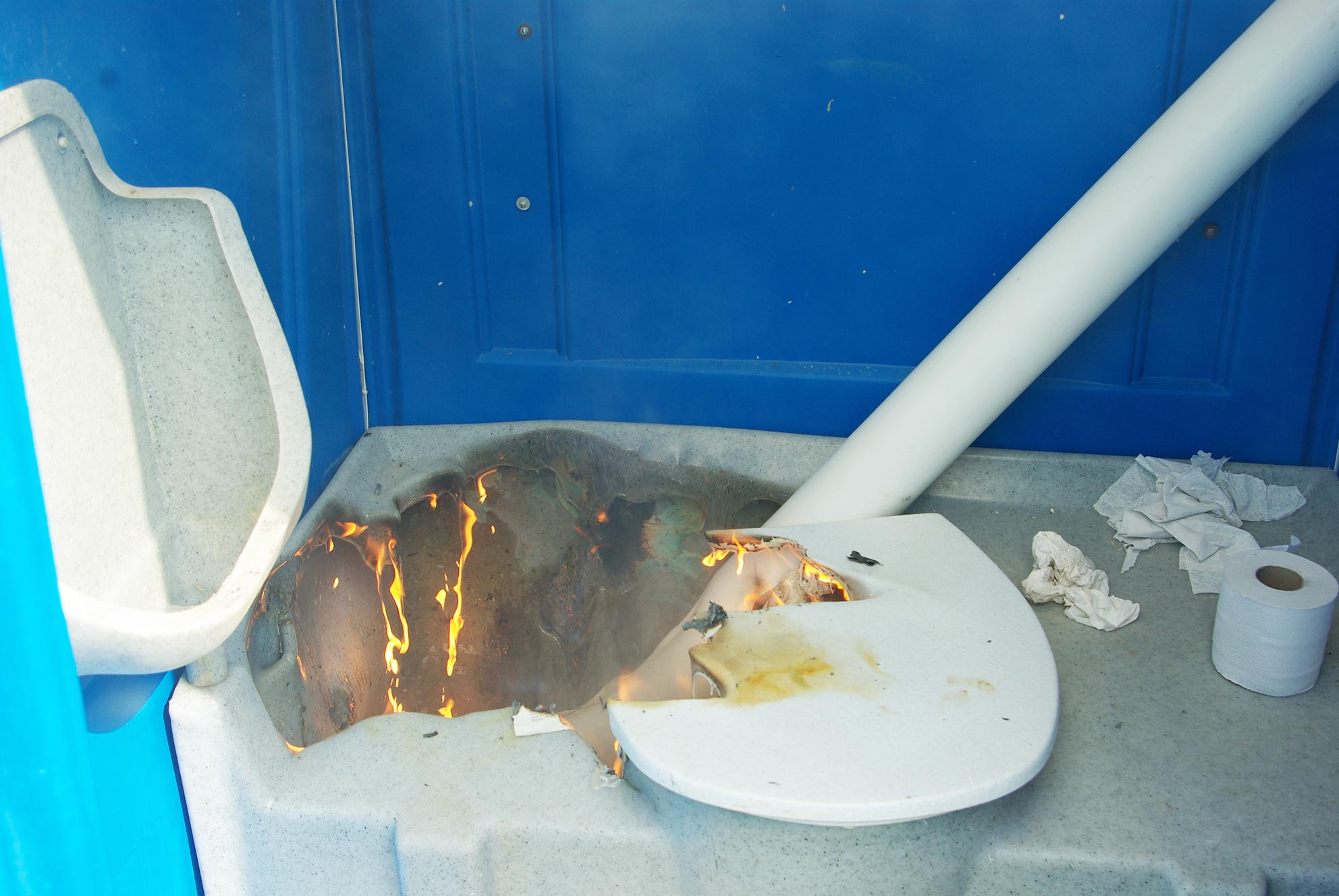 Auch wenn „beissender Geruch aus Dixi-Häuschen“ in der Regel kein Fall für die Feuerwehr ist, so zeigten diesmal der Gestank von verbranntem Plastik und die zusätzliche Rauchentwicklung, dass in der Kabine etwas nicht stimmen konnte. Die nähere Erkundung der Feuerwehr ergab, dass die Toilettenkabine im Bereich des Sitzes brannte. Mittels einem C-Rohr löschte die Feuerwehr den Brand ab bevor noch weiterer Schaden entstehen konnte.