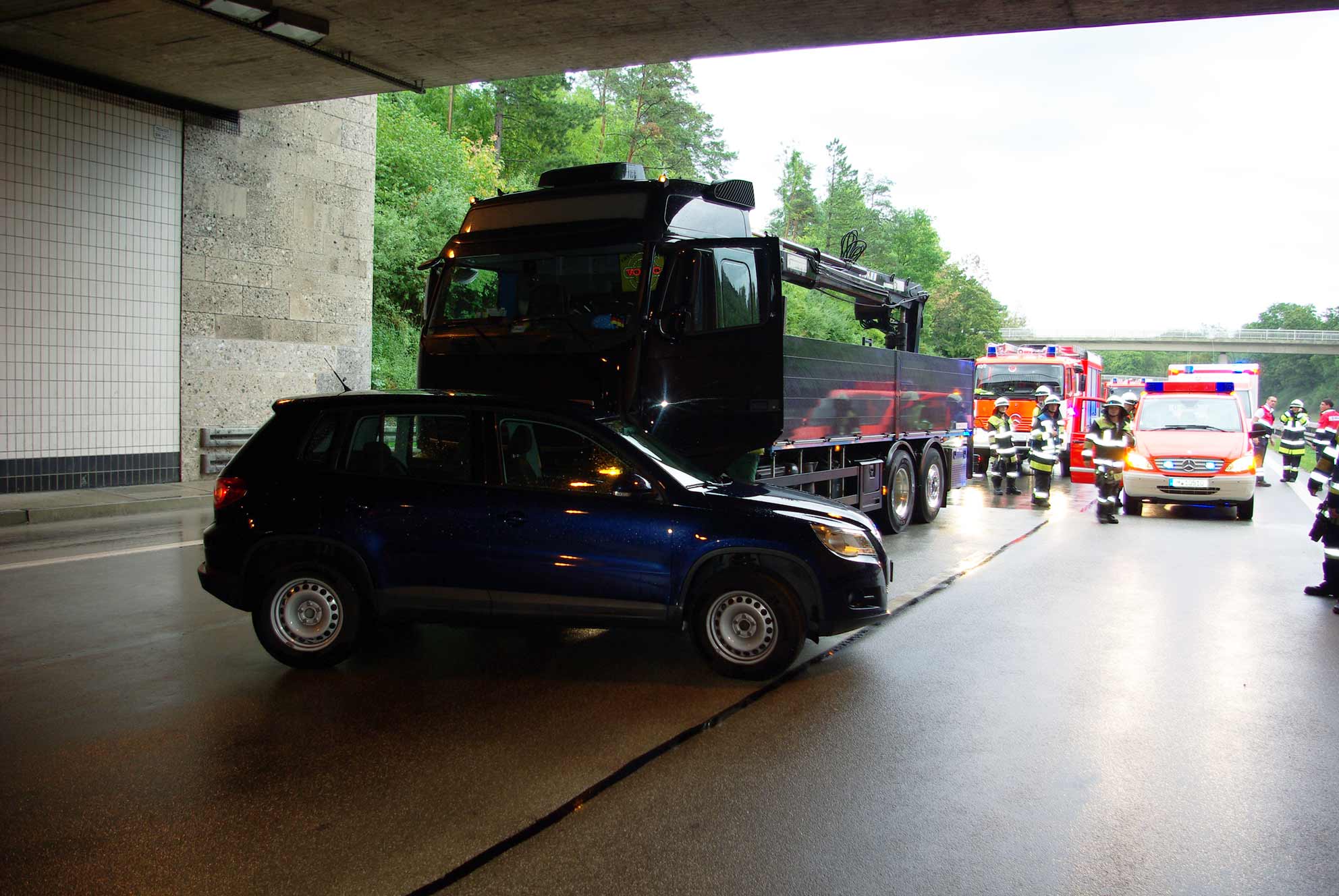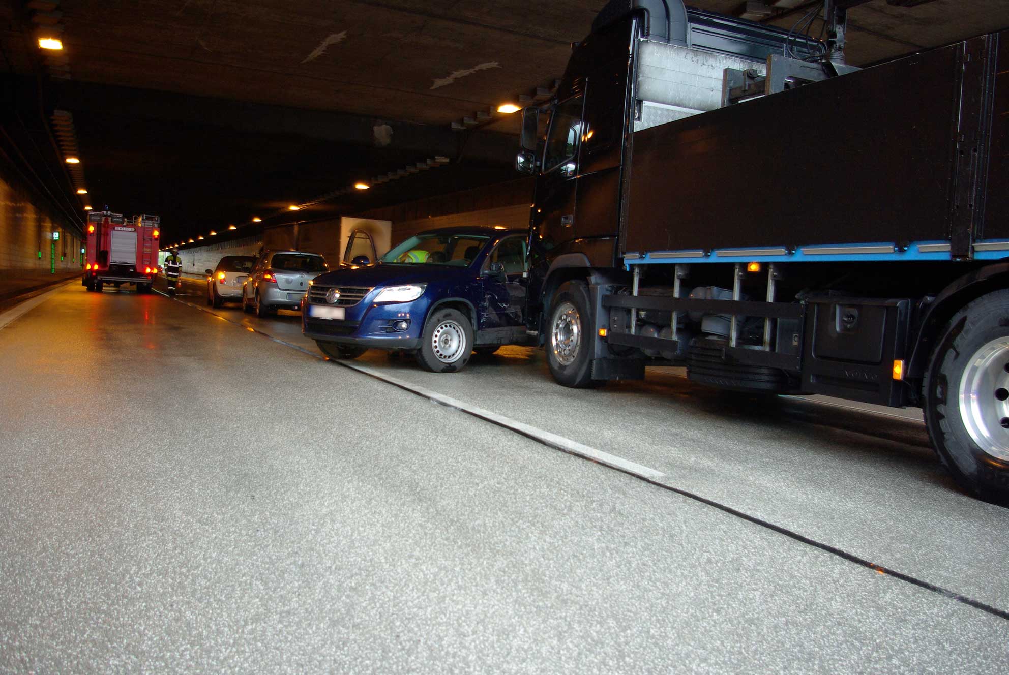 Am 19.08.2013 kam es um 16:38 Uhr auf der A96 im Gräfelfinger Tunnel zu einem Auffahrunfall zwischen einem LKW und einem PKW.
