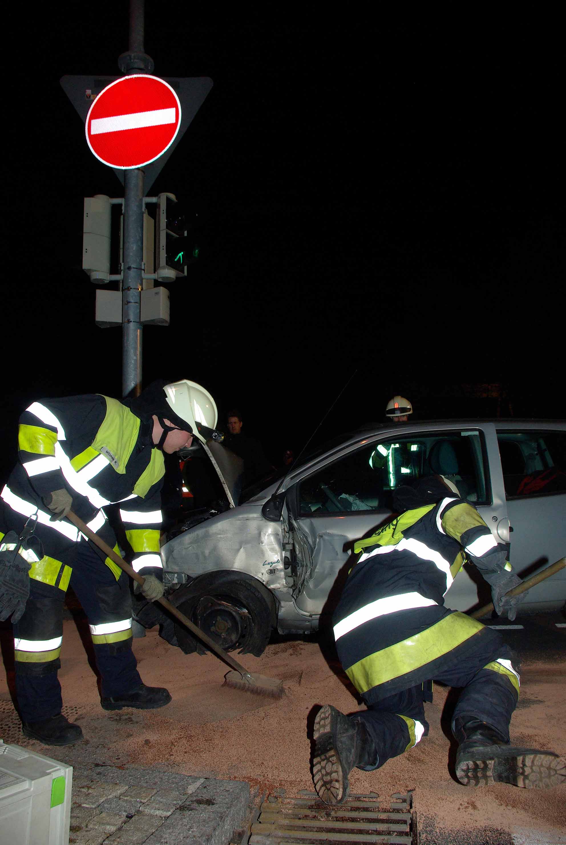 34 Einsatzkräfte der Feuerwehr Gräfelfing mussten die Verkehrsabsicherung und den Brandschutz sicherstellen sowie die Fahrbahn von auslaufenden Betriebsstoffen und Unfallspuren reinigen.