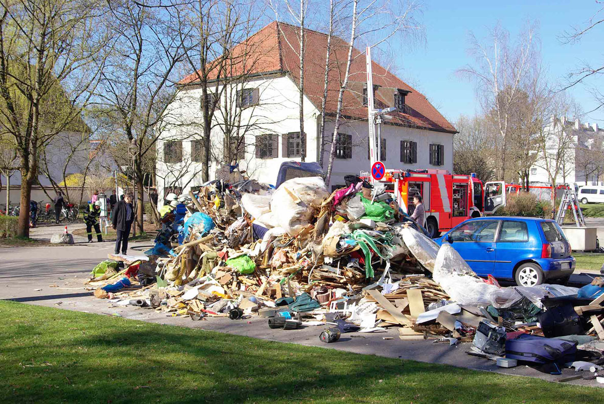 Am Morgen des 29.03.2014 staunten die Mitglieder der Feuerwehr Gräfelfing nicht schlecht als ein Müllfahrzeug unangekündigt vor den Hof der Feuerwehr fuhr und dort umgehend seinen Müll entlud.