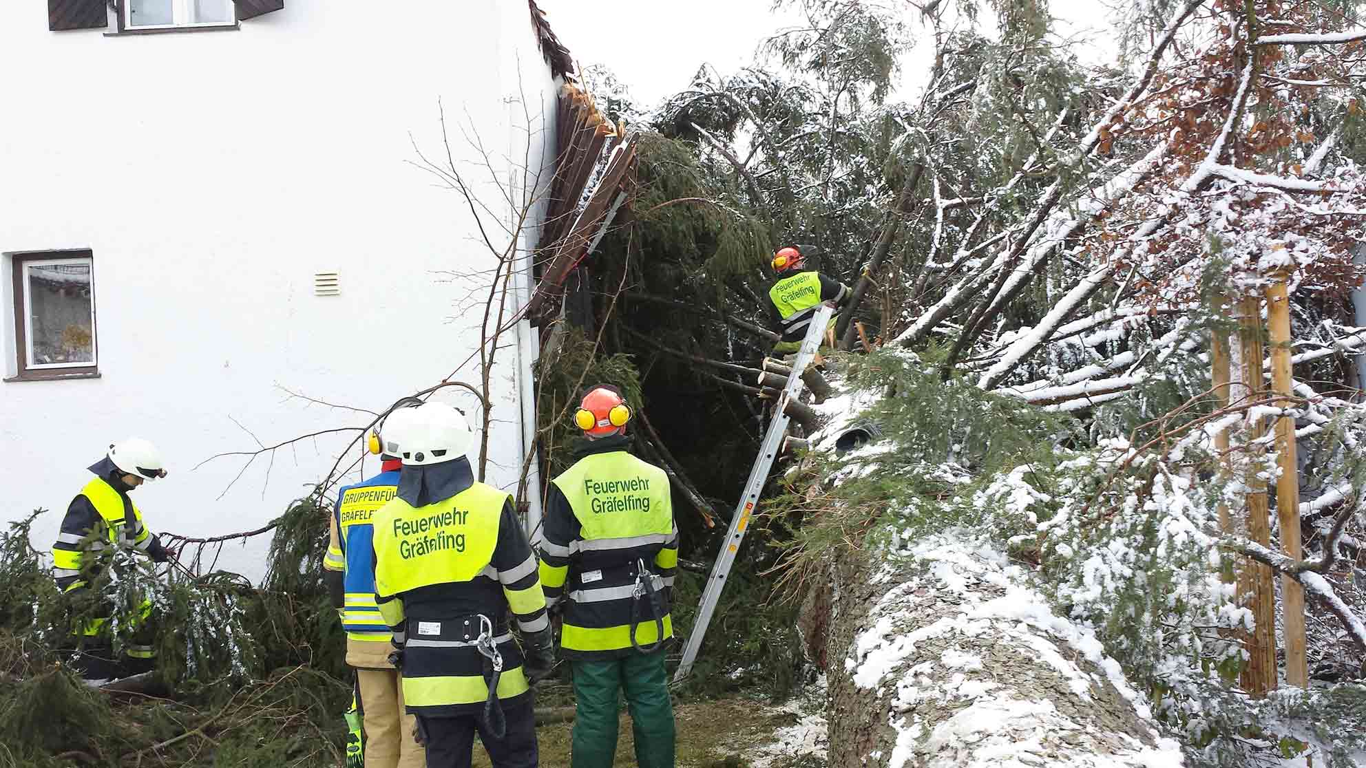 Bereits in den Morgenstunden brachten starke Windböen Bäume und Stromleitungen in bedrohliche Schieflage. Um kurz nach halb 9 lief dann im Gerätehaus bereits das erste Alarmfax aus dem Drucker. Die freiwilligen Einsatzkräfte wurden in die Würmstraße zu einem auf der Fahrbahn liegenden Ast gerufen. Dieser Einsatz stellte den Beginn eines einsatzreichen Tages dar. Im Schnitt erhielt die Feuerwehr Gräfelfing von nun an alle 10 Minuten Meldungen über weitere Einsatzstellen. Die Einsatzleitung veranlasste daher über die Feuerwehreinsatzzentrale umgehend Vollalarm, wobei sogar auf das Mittel der SMS-Alarmierung zurückgegriffen wurde.