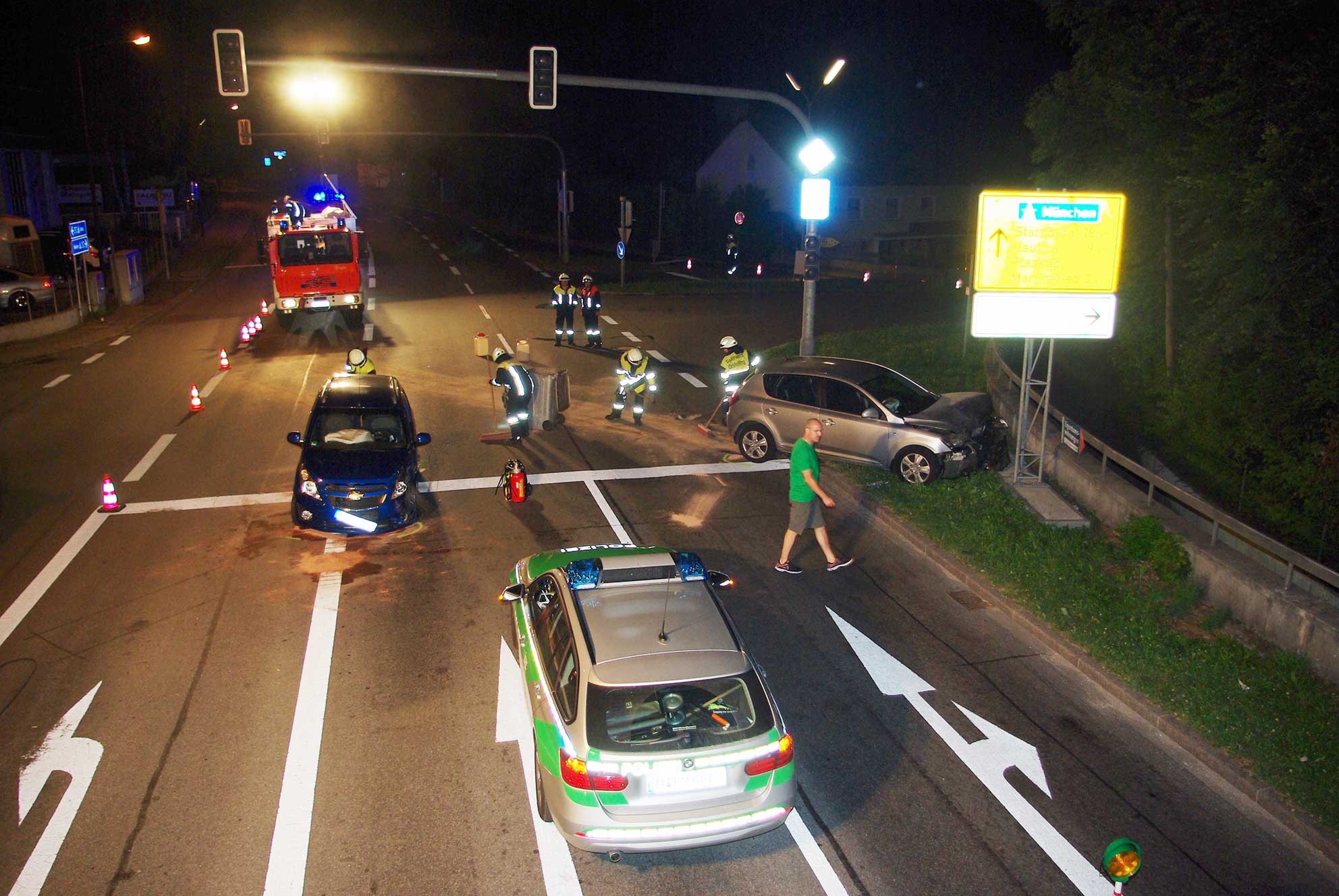 Dort war einer auf die Pasingerstraße abgebogener Chevrolet mit einem nach Norden fahrenden Kia frontal zusammengestoßen. Beide Fahrer wurden vorsorglich zur Untersuchung ins Krankenhaus gebracht. Die Feuerwehr Gräfelfing sicherte die Unfallstelle ab, reinigte die Fahrbahn von den ausgelaufenen Betriebsmitteln und leuchtete die Einsatzstelle aus.