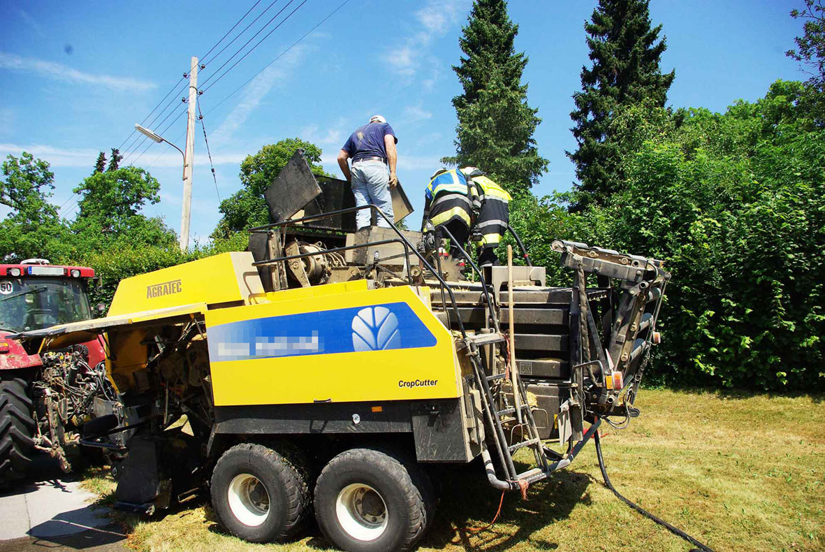 „Ballenpresse fängt an zu brennen“ lautete das ungewöhnliche Alarmstichwort zu dem die Feuerwehr Gräfelfing am 22.7.2015 um 14:46 in die Pasingerstraße alarmiert wurde.
