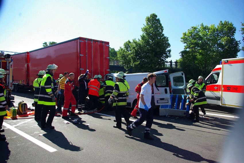 Die Feuerwehr musste den LKW im Heckbereich anheben und den Kleintransporter mit einer Seilwinde unter diesem hervorziehen um dann mit der Befreiung des schwer verletzten Kleintransporterfahrers beginnen zu können. Zusätzlich mussten von der Feuerwehr der Brandschutz für die Unfallstelle sichergestellt, auslaufende Betriebsstoffe der Unfallfahrzeuge aufgenommen sowie alle Spuren der Autobahn in Richtung München gesperrt werden.