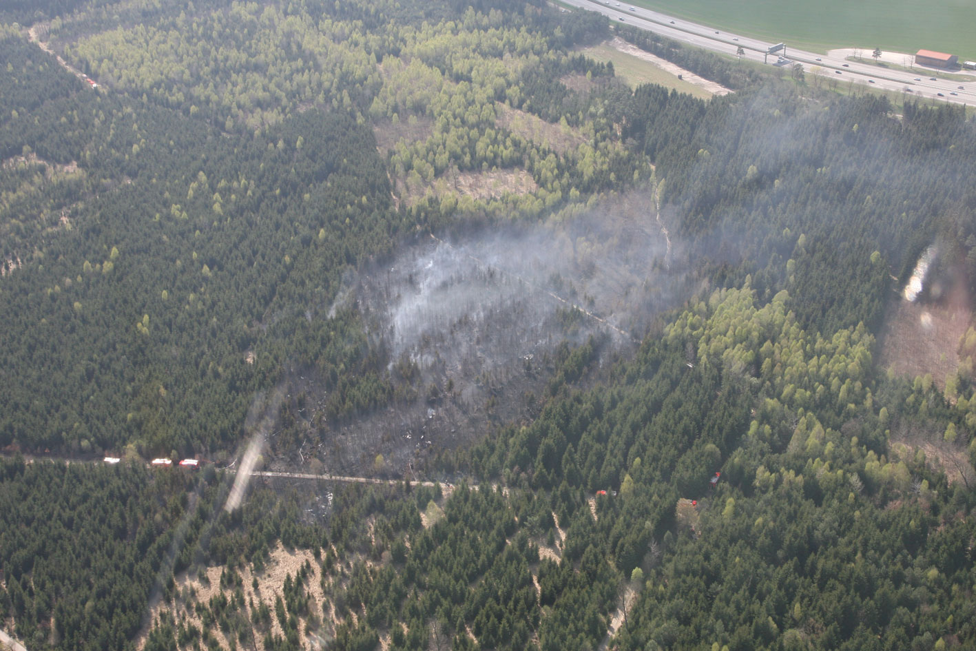 Am 16.04.09 um 14:03 Uhr wurden die Feuerwehr Gräfelfing in das Waldgebiet nahe der Geigerstraße gerufen. Bereits auf der Anfahrt war die Rauchentwicklung so extrem, dass die Feuerwehr Planegg hinzualarmiert wurde. Vor Ort stellte sich der Brand, mit einer Fläche von 250.000m², als derart umfangreich heraus, dass noch mehrere Löschzüge nachgefordert wurden.