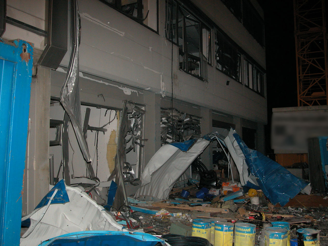 Selbst in weiterer Umgebung waren Schäden zu beklagen - das Gebäude des gemeindlichen Bauhofes wurde durch umherfliegende Teile ebenfalls beschädigt und auch hier gingen etliche Fensterscheiben zu Bruch. Die Feuerwehr Gräfelfing war mit 33 Einsatzkräften bis ca. 2 Uhr mit Aufräumarbeiten beschäftigt.