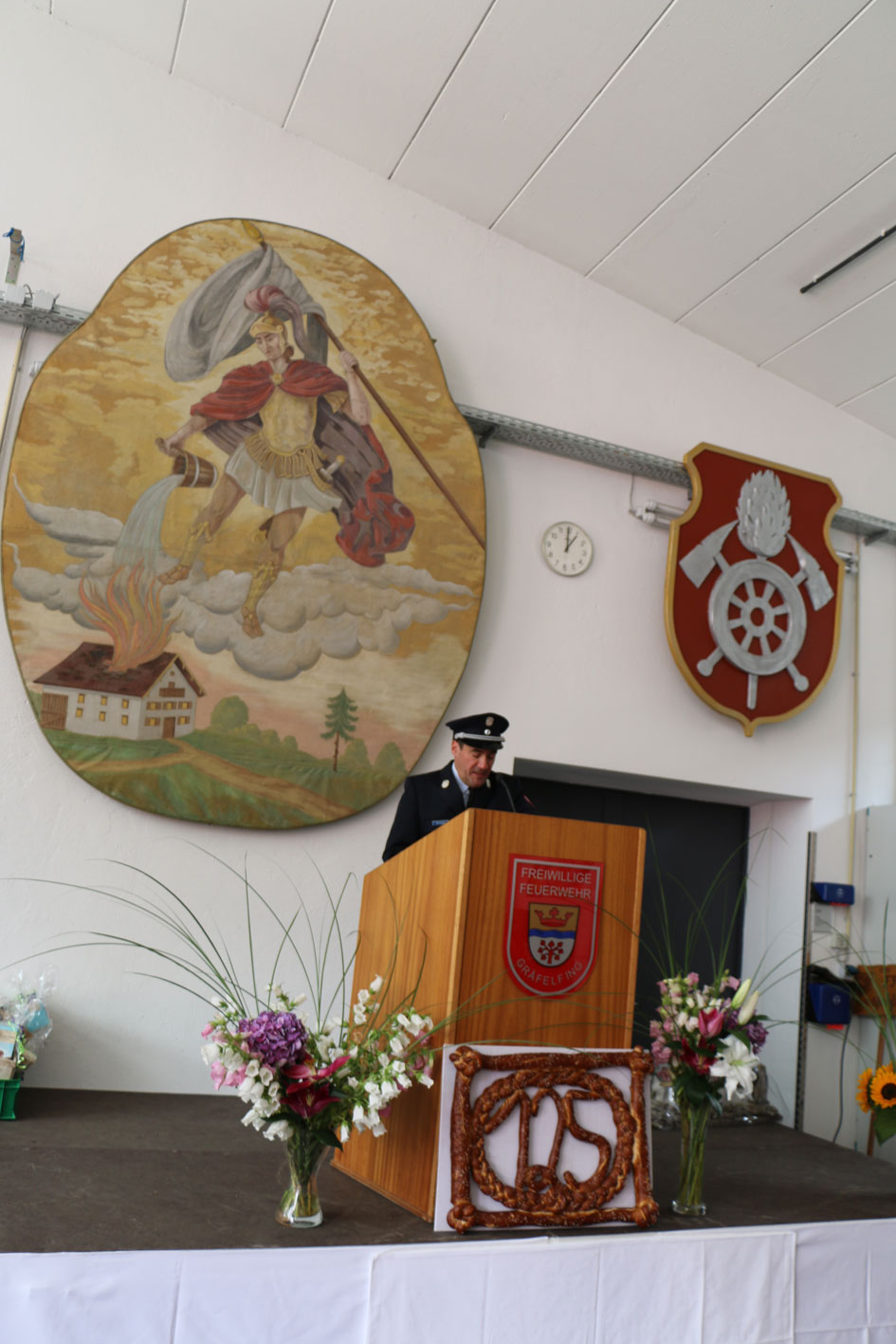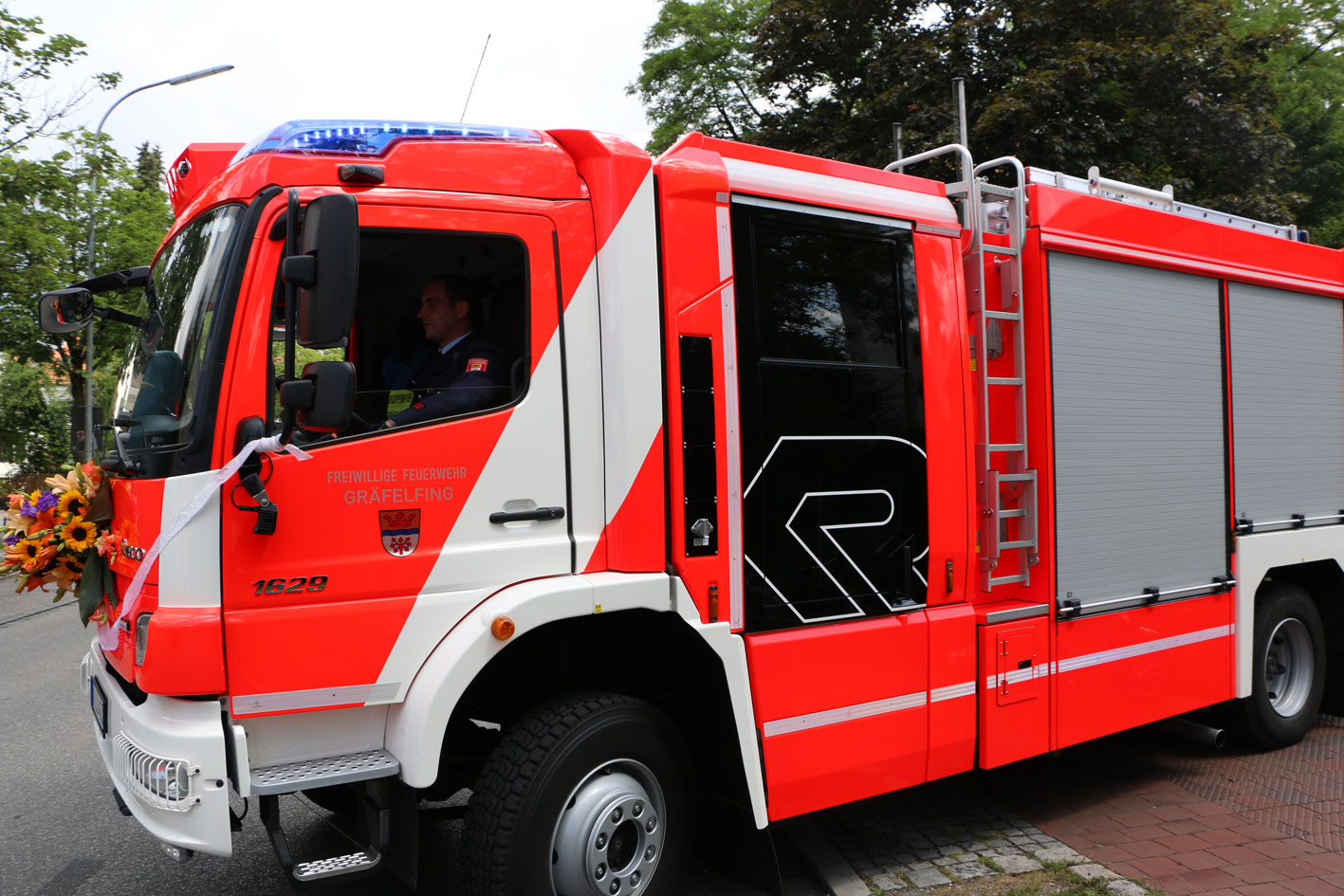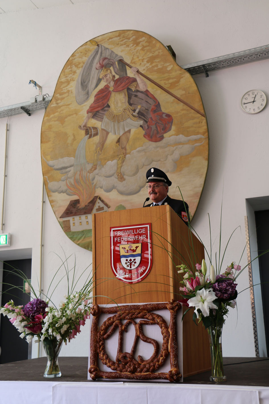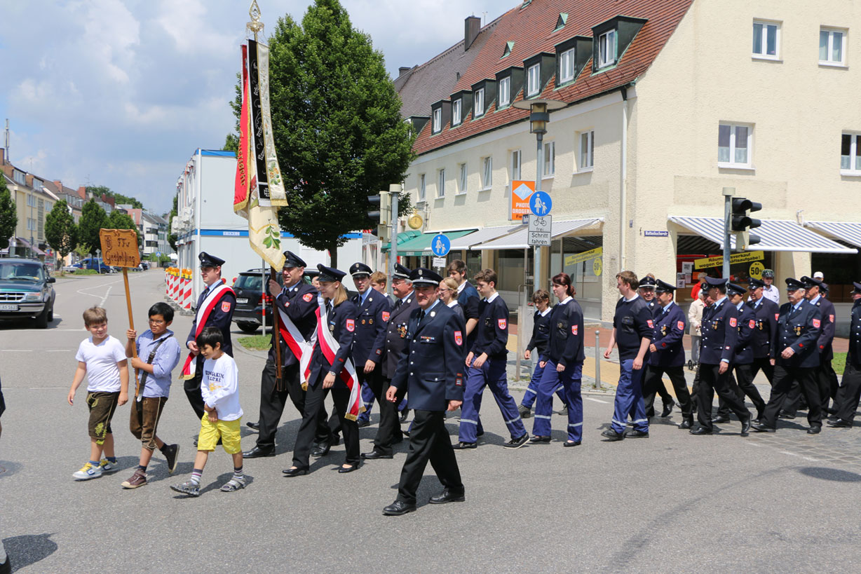 Am nächsten Tag fand der Festgottesdienst in der Kirche St. Stefan statt. Anschließend gab es die feierliche Segnung des Heiligen Florians, des Kleinalarmfahrzeugs und des neuen Löschgruppenfahrzeugs. Im Anschluss gab es einen kleinen Festumzug zum Feuerwehrhaus mit den ansässigen Ortsvereinen, den Nachbar- und Partnerfeuerwehren, sowie den befreundeten Wehren. Im Feuerwehrgerätehaus wurden dann etliche Festreden gehalten. Von der Partnerfeuerwehr Zauchen erhielt die Feuerwehr Gräfelfing eine handgearbeitete Krippe als Andenken für das 125-jährige Bestehen der Wehr.