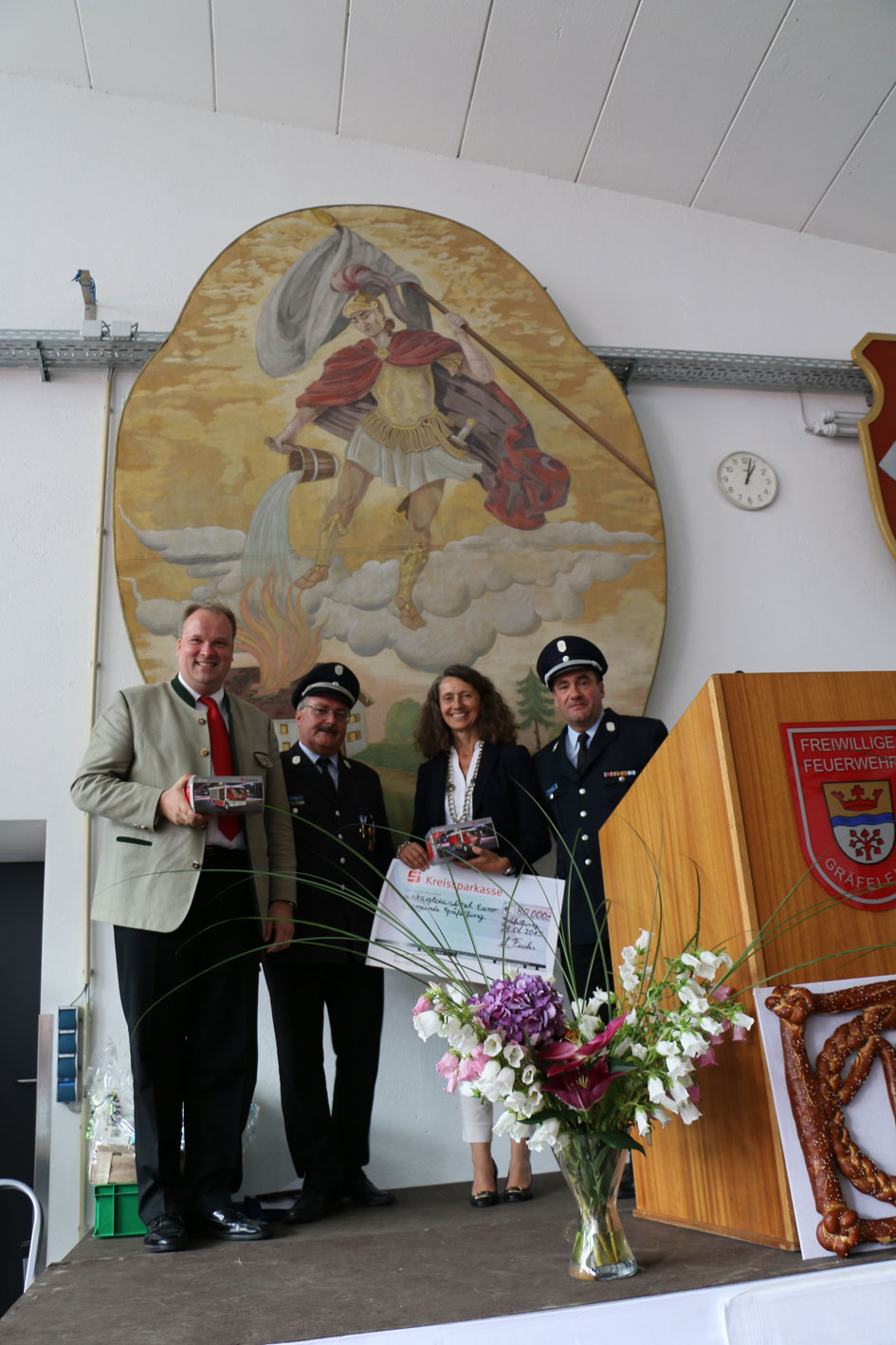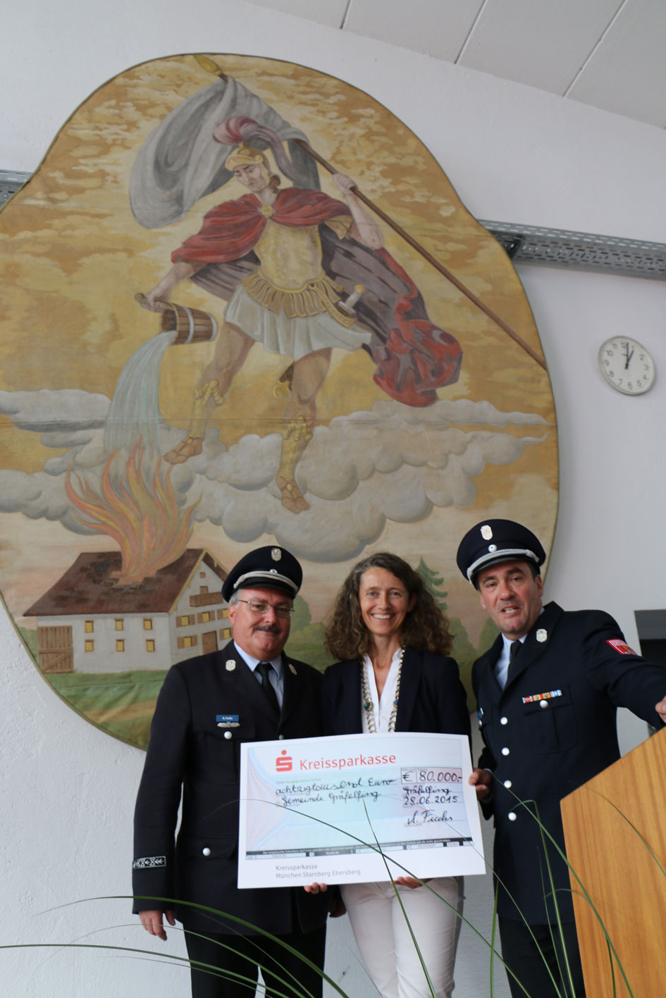 Dank großzügiger Spenden der Gräfelfinger Bürger an den Feuerwehrverein, konnte Bürgermeisterin Uta Wüst einen Scheck in Höhe von 80.000 Euro in Empfang nehmen. Das Wochenende ließ man mit einem gemütlichen Beisammensein ausklingen.