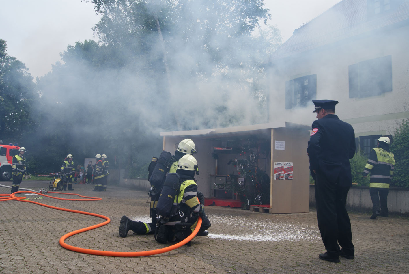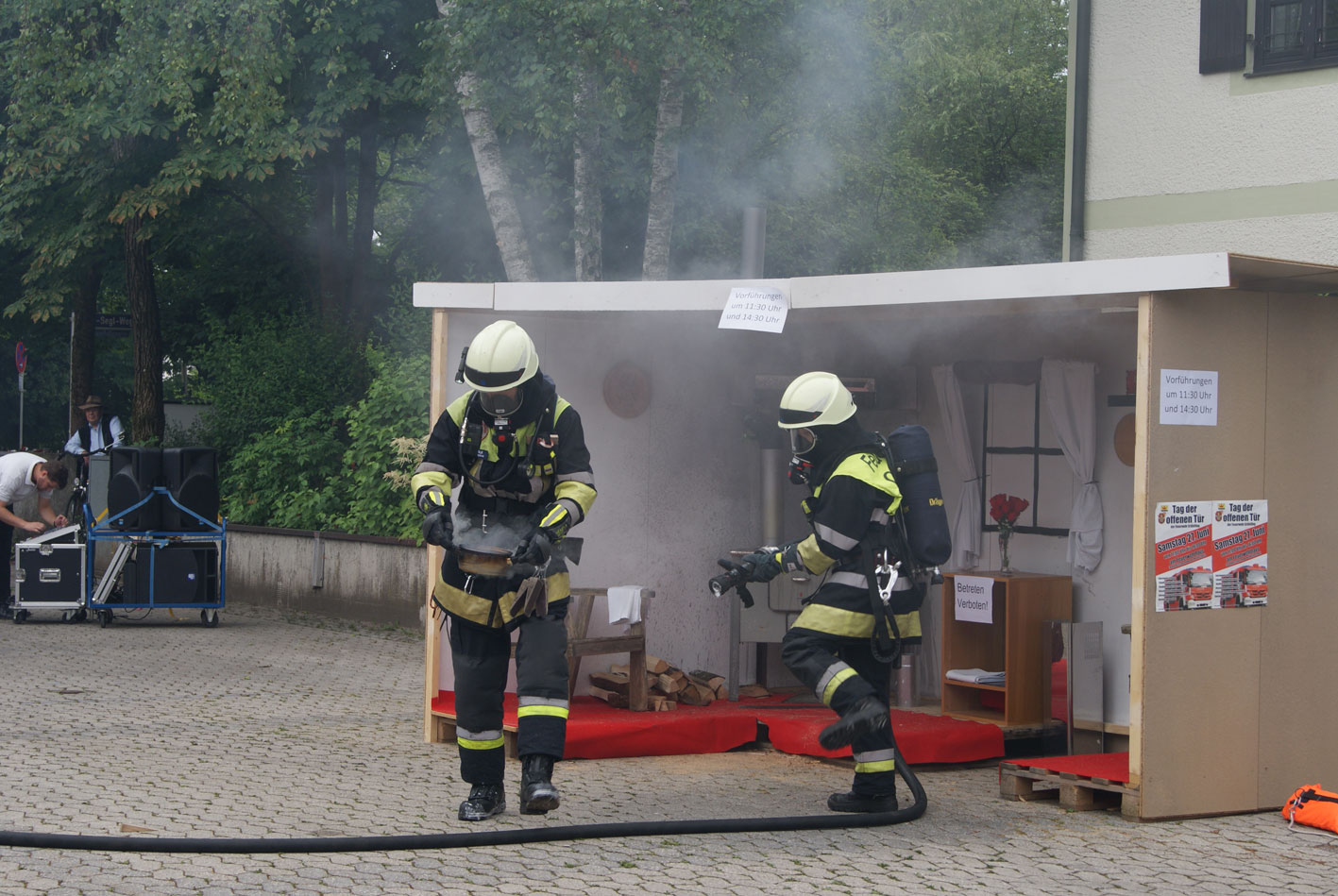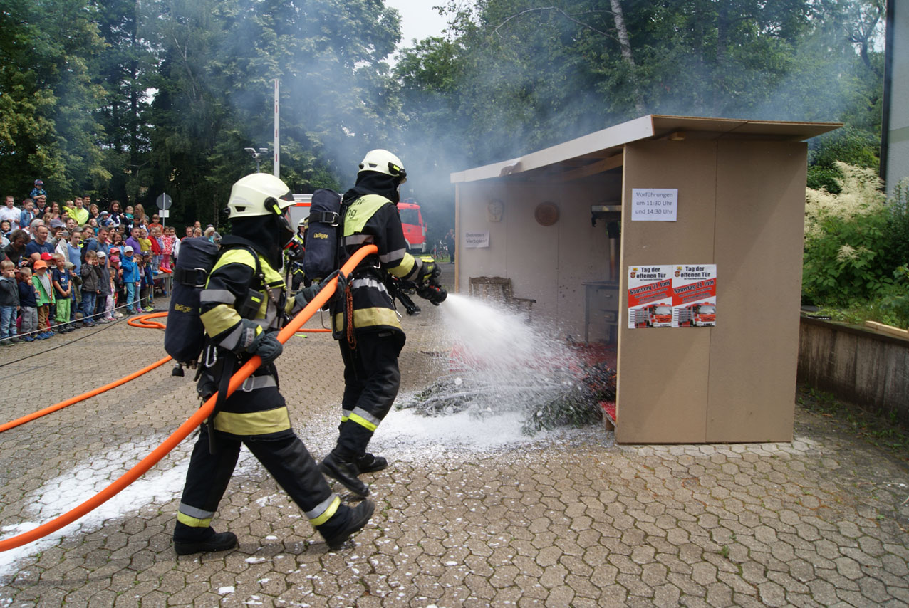 Am Samstag, den 27. Juni fand unser Tag der offenen Tür statt. Es gab verschiedene Einsatzvorführungen, wie einen Verkehrsunfall oder auch einen Zimmerbrand mit Christbaumbrand und einer Fettexplosion in der Küche. Anschließend verteilte der Atemschutztrupp Gummibärchen an die Kinder. Erstmalig gab es eine Modenschau mit allen Uniformen und Schutzanzügen, dies kam bei unseren Besuchern sehr gut an. Die Höhensicherungsgruppe veranstaltete ein Kastenklettern.