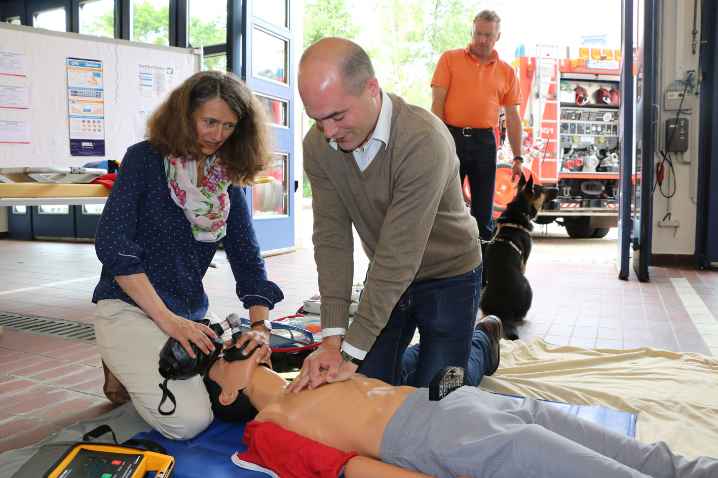 Wenn keine Vorführung war konnte man sich an den verschiedenen Ständen in der Fahrzeughalle über verschiedene Geräte informieren und auch mal seine Erste-Hilfe - Kenntnisse auffrischen, indem man z.B. den Defi ausprobieren konnte. Ebenfalls konnte man sich über Rettungskarten für das Auto beraten lassen und selbst erstellen. Alle Fahrzeuge waren rund um das Gelände ausgestellt. Hausführungen und Filmvorführungen gab es auch für die Besucher.