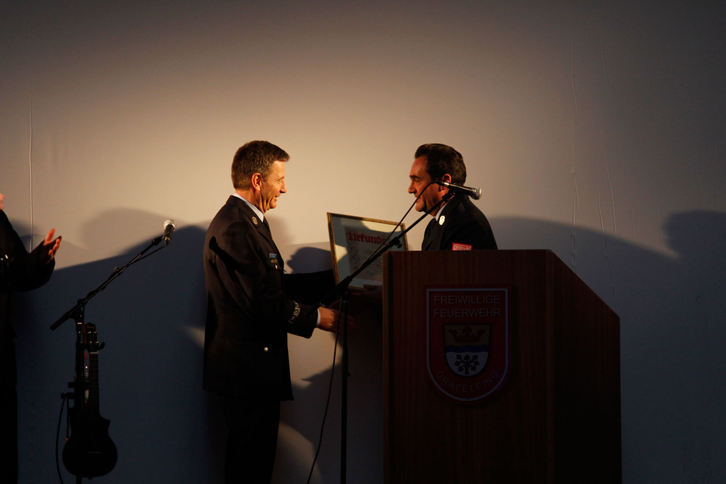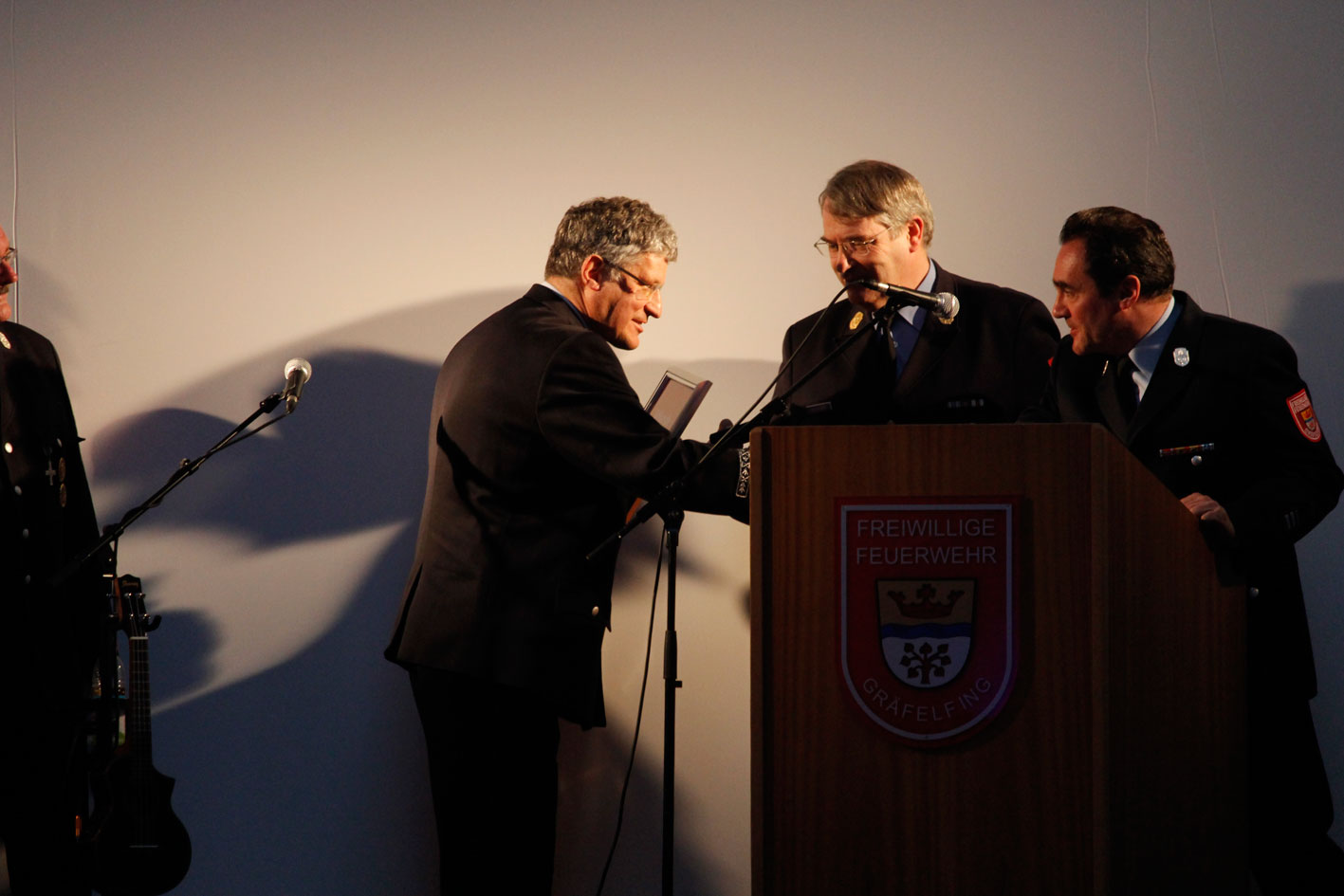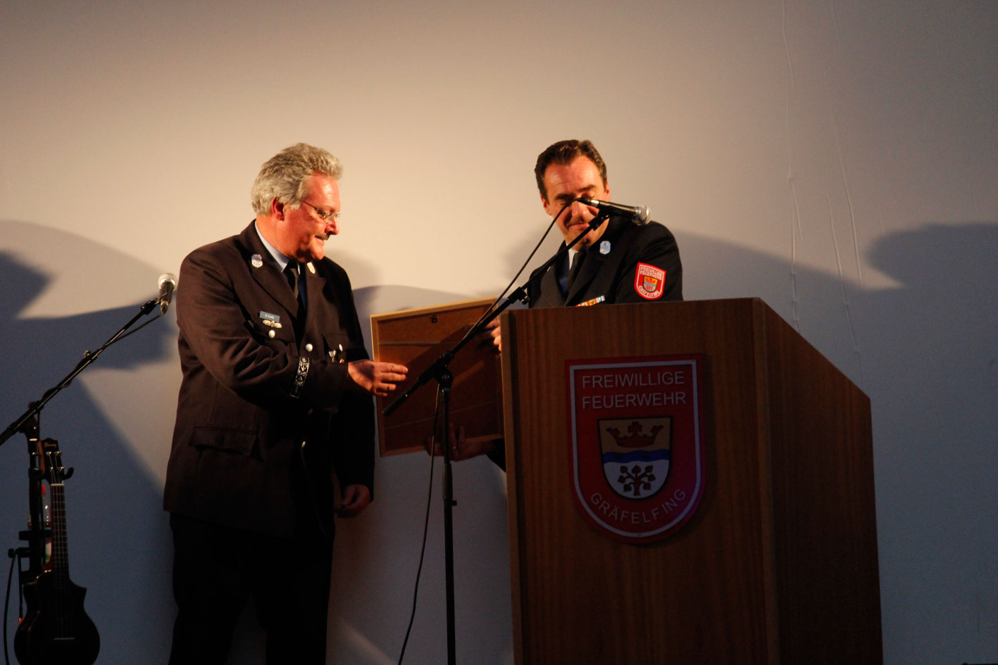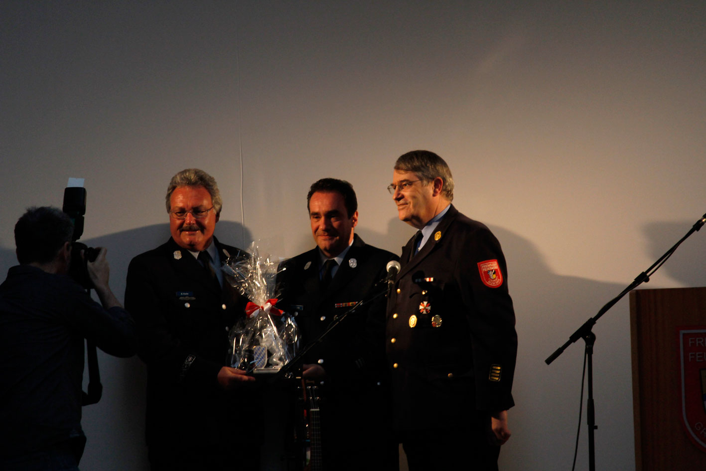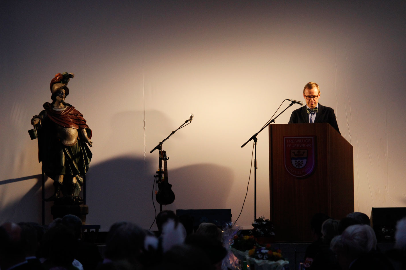 Etwas Einmaliges überreichten uns Herr Doktor Fischer und seine Familie. Sie leihen uns eine lebensgroße Statue des Heiligen Florians, den Schutzpatron der Feuerwehrkräfte. Es ist ein Familienerbstück. Der Heilige Florian wird nach einer feierlichen Weihe restauriert und dann einen besonders ausgewählten Standort in unserem Feuerwehrgerätehaus haben.