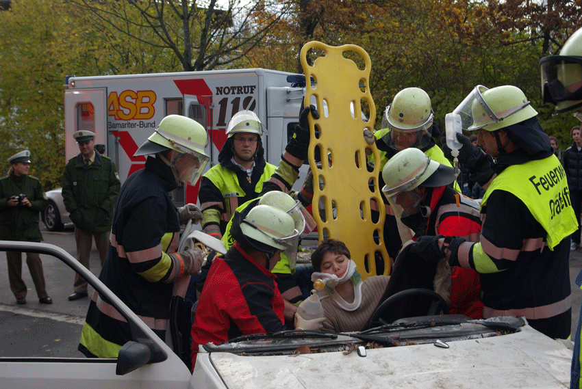 Dieses Jahr führten wir den Schülern des Kurt-Huber-Gymnasiums in Gräfelfing vor, wie das Zusammenspiel von Rettungsdienst, Polizei und Feuerwehr an einer Unfallstelle funktioniert und wie Verletzte und eingeklemmte Personen aus einem Unfallfahrzeug befreit werden. Das ganze fand im Rahmen des Gesundheitstages statt, an dem auch für die Jugendlichen Vorträge von Rettungsorganisationen gehalten wurden.