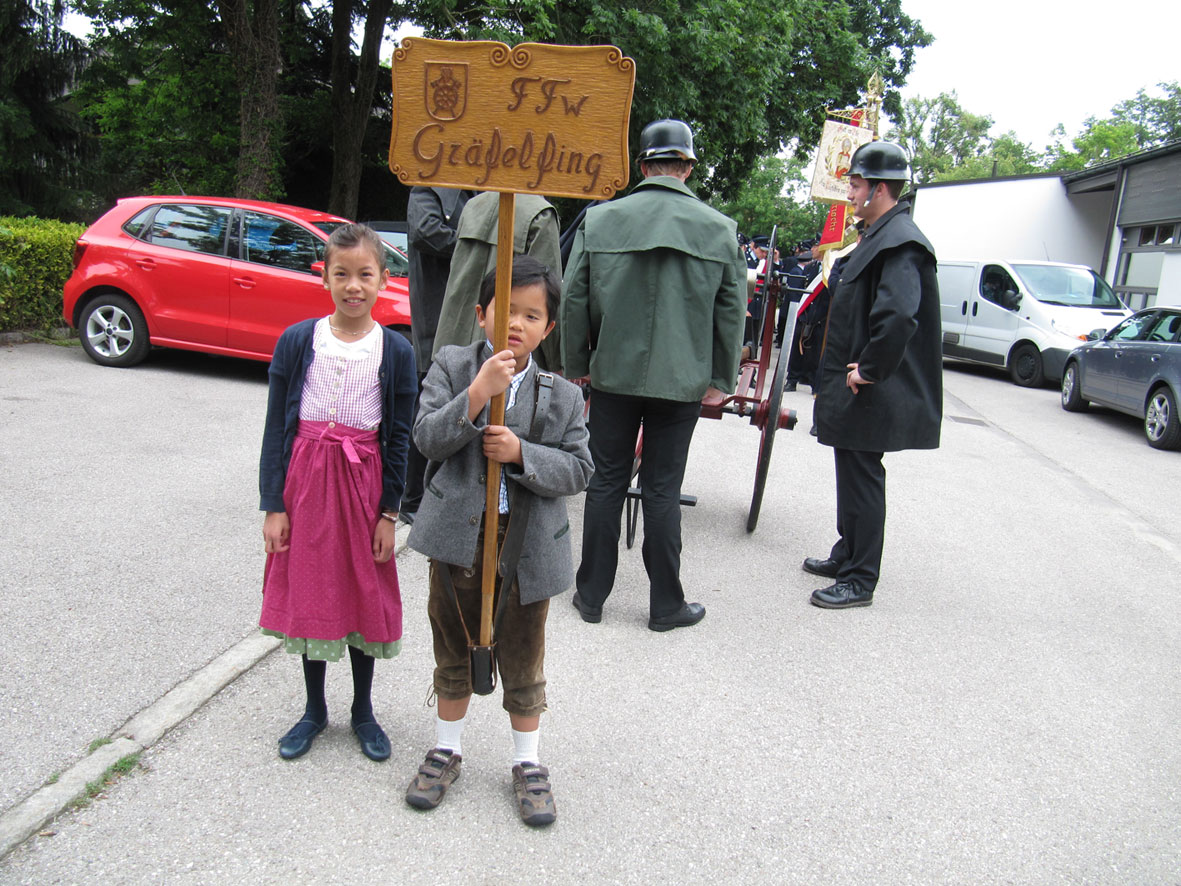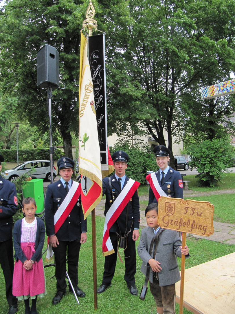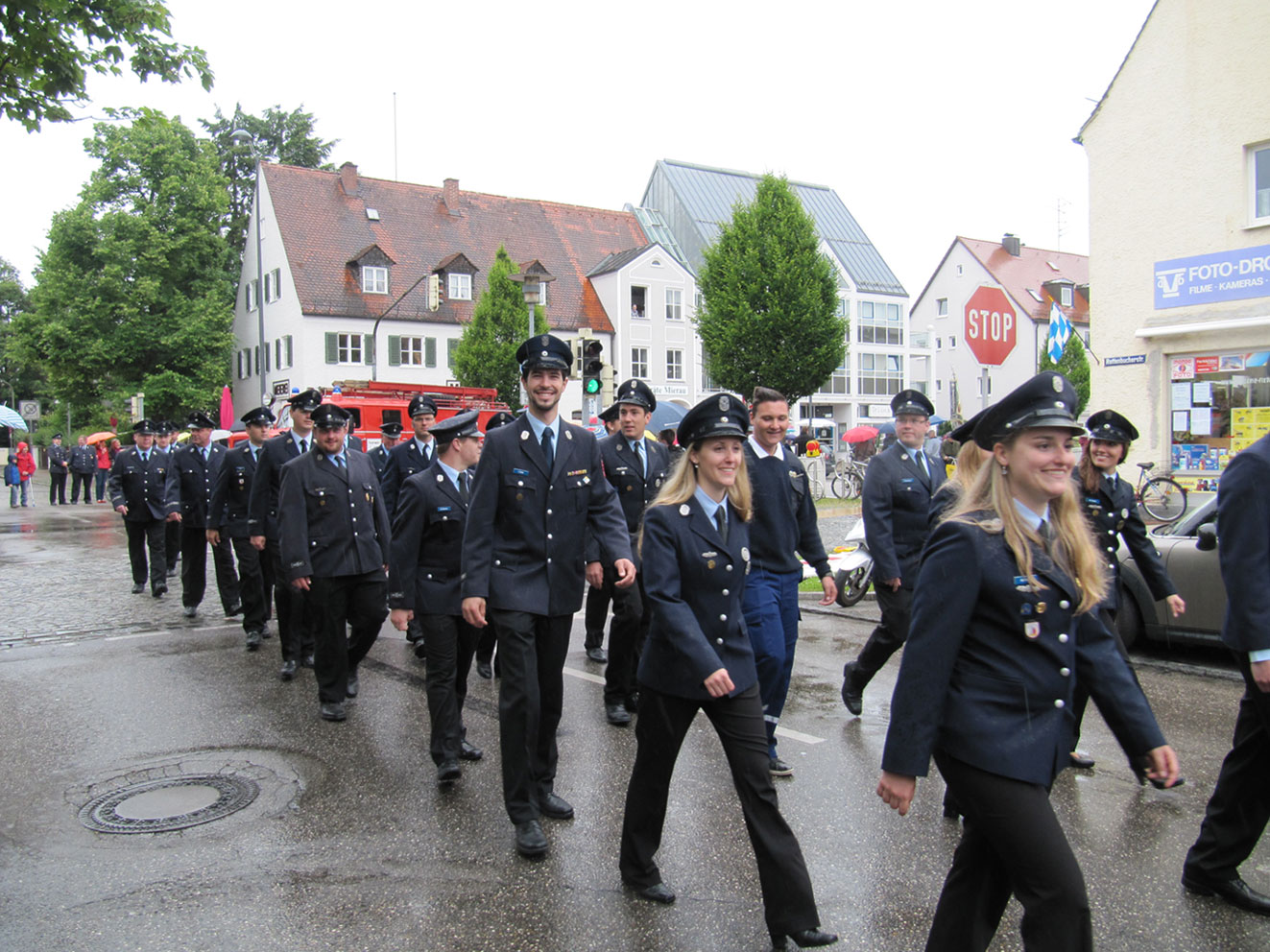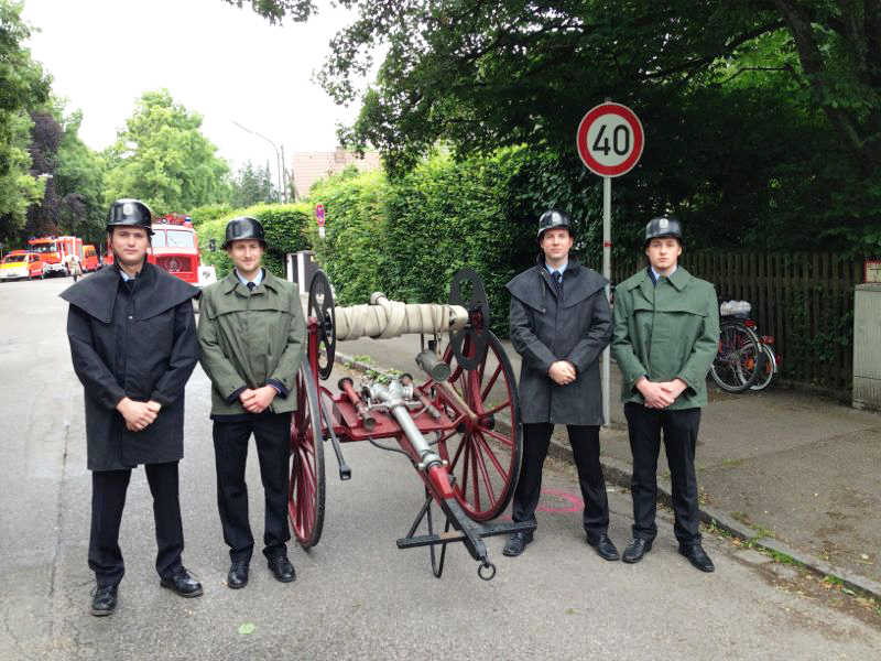 Nur eine Woche später feierte unsere Gemeinde ihr Jubiläum. Auch bei uns gab es vier Tage lang ein Festzelt, bei dem wir die Veranstaltungswachen übernahmen. Ein Highlight war der Auftritt der Spider Murphey Gang und einem anschließenden Feuerwerk. Am Sonntag fand dann der Festumzug aller Vereine durch Gräfelfing statt, sowohl in historischen Outfits, wie in den heutigen Uniformen.