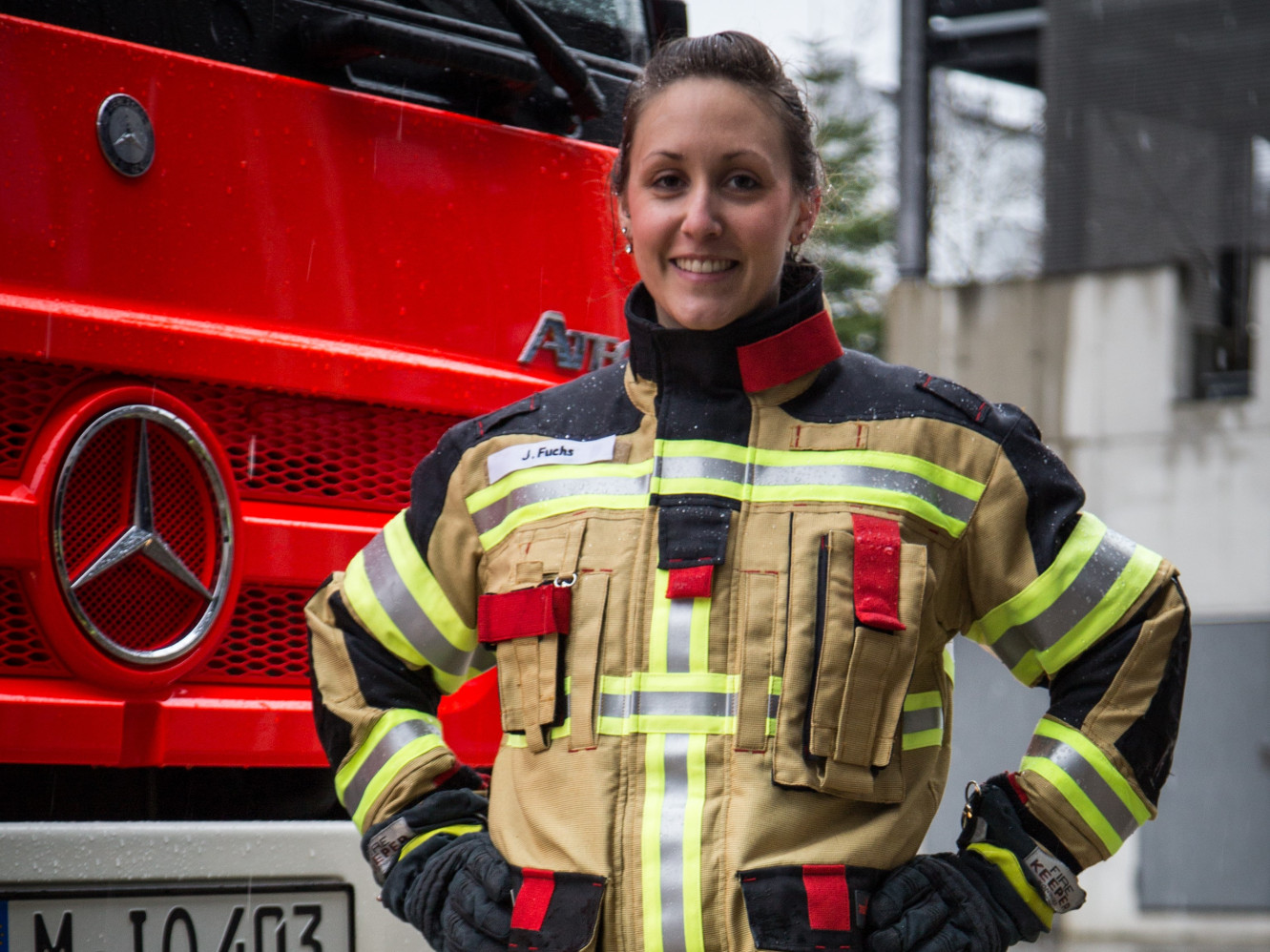 Neben ihrem berufsbegleitenden BWL-Studium tanzt Julia Fuchs leidenschaftlich gerne in der Germeringer Showtanzgruppe „Fun Unlimited“. Doch zu ihrem Alltag gehört auch der Piepser, der sie regelmäßig zu Einsätzen ruft. Bereits 2004 ist sie gemeinsam mit ihrer Schwester in die Jugendgruppe der Feuerwehr Gräfelfing eingetreten. Als Atemschutzgeräteträgerin und Maschinistin ist sie ein gutes Beispiel, dass Feuerwehren Frauen wie sie brauchen.