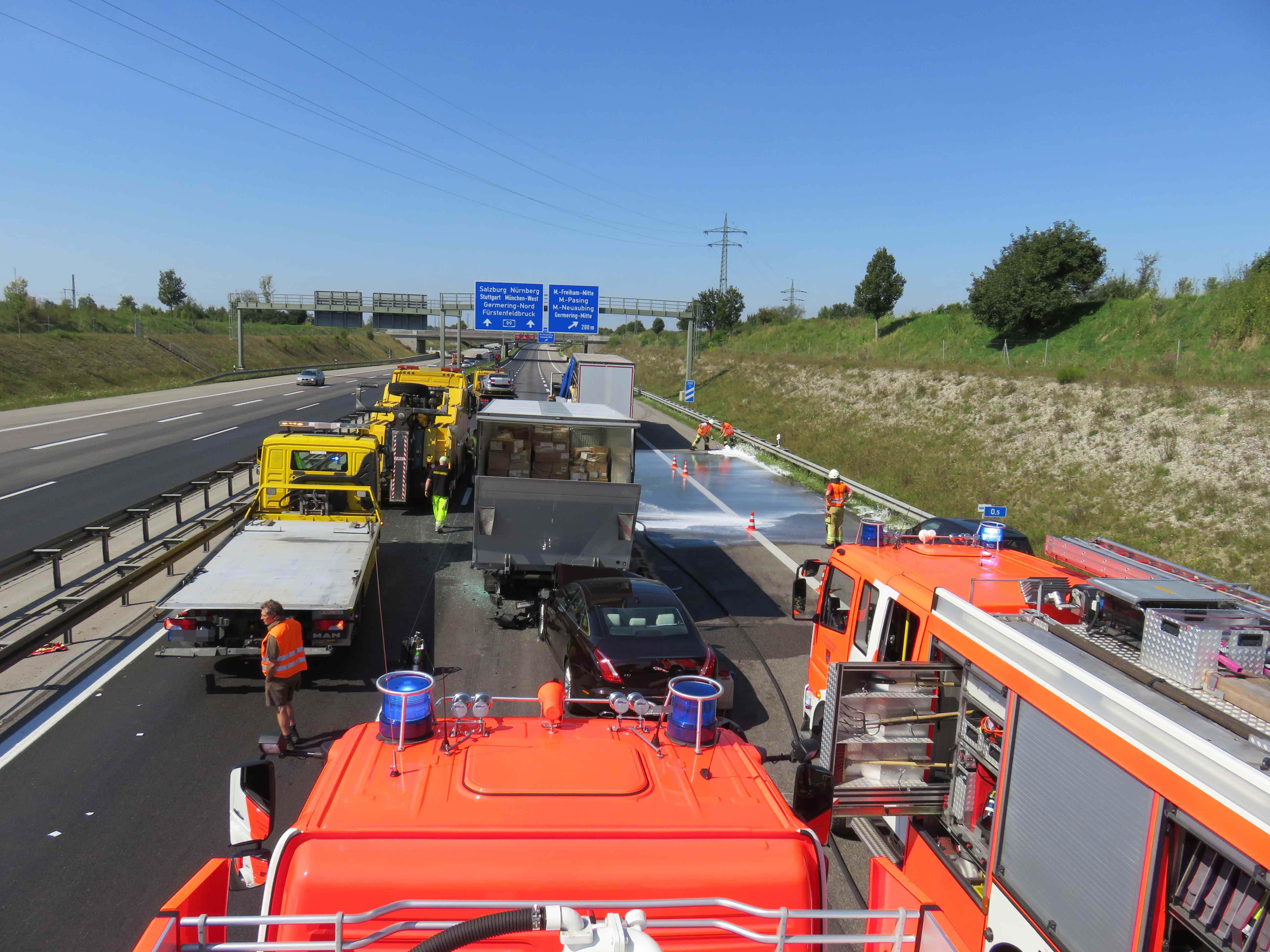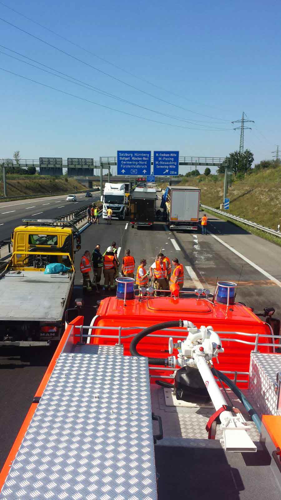 Am Freitagnachmittag wurde die FF Gräfelfing auf die BAB 99 Richtung Salzburg kurz vor der Ausfahrt Freiham Mitte alarmiert. Das Einsatzstichwort lautete Fahrbahnreinigung. Vor Ort stellte sich die Einsatzlage jedoch anders dar.
