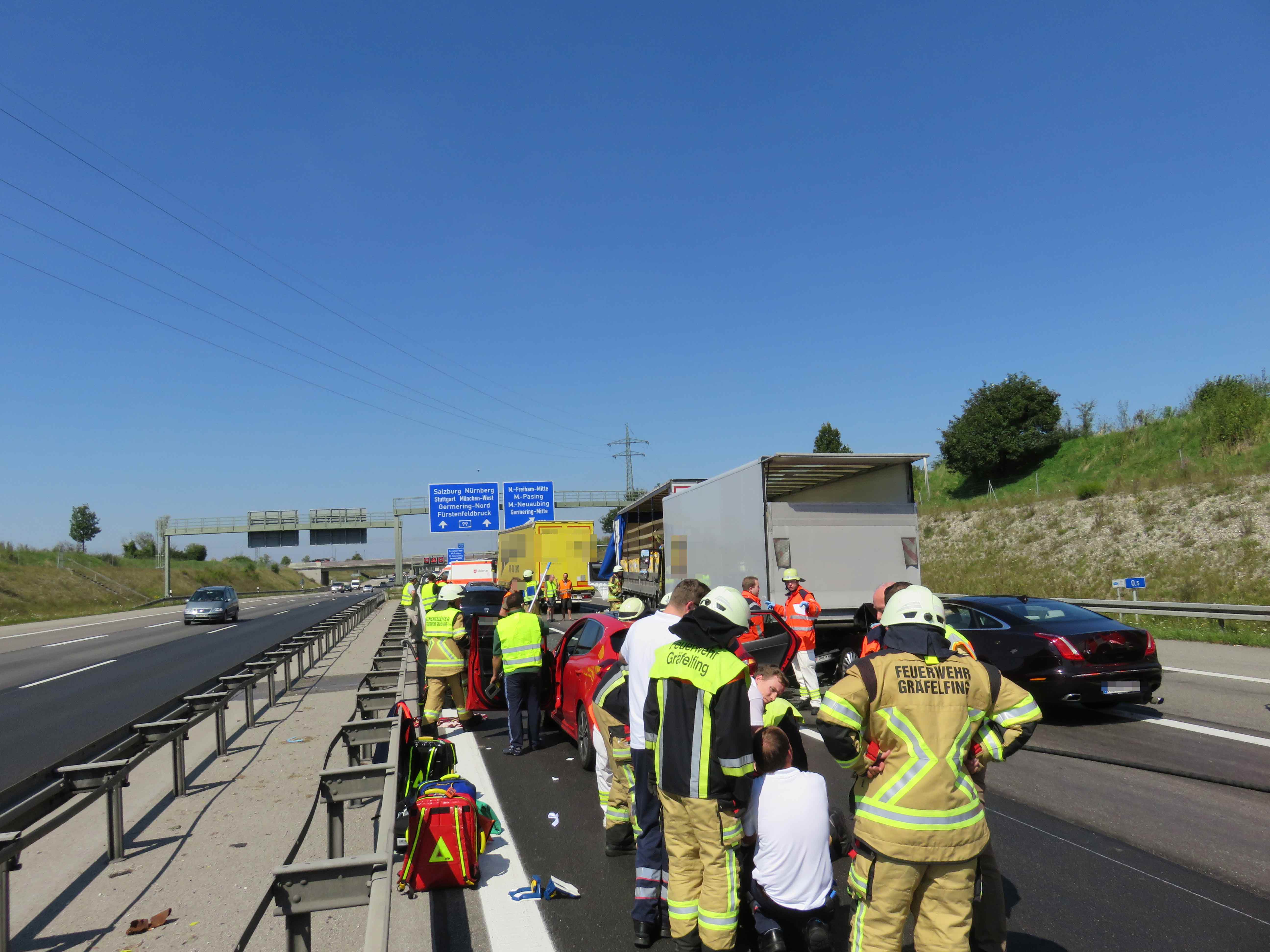 Von der FF Gräfelfing waren insgesamt 24 Kameraden knapp 4h im Einsatz. Des Weiteren waren die Polizei, 3 RTWs und 1 Notarzt, das THW und die Autobahnmeisterei vor Ort.