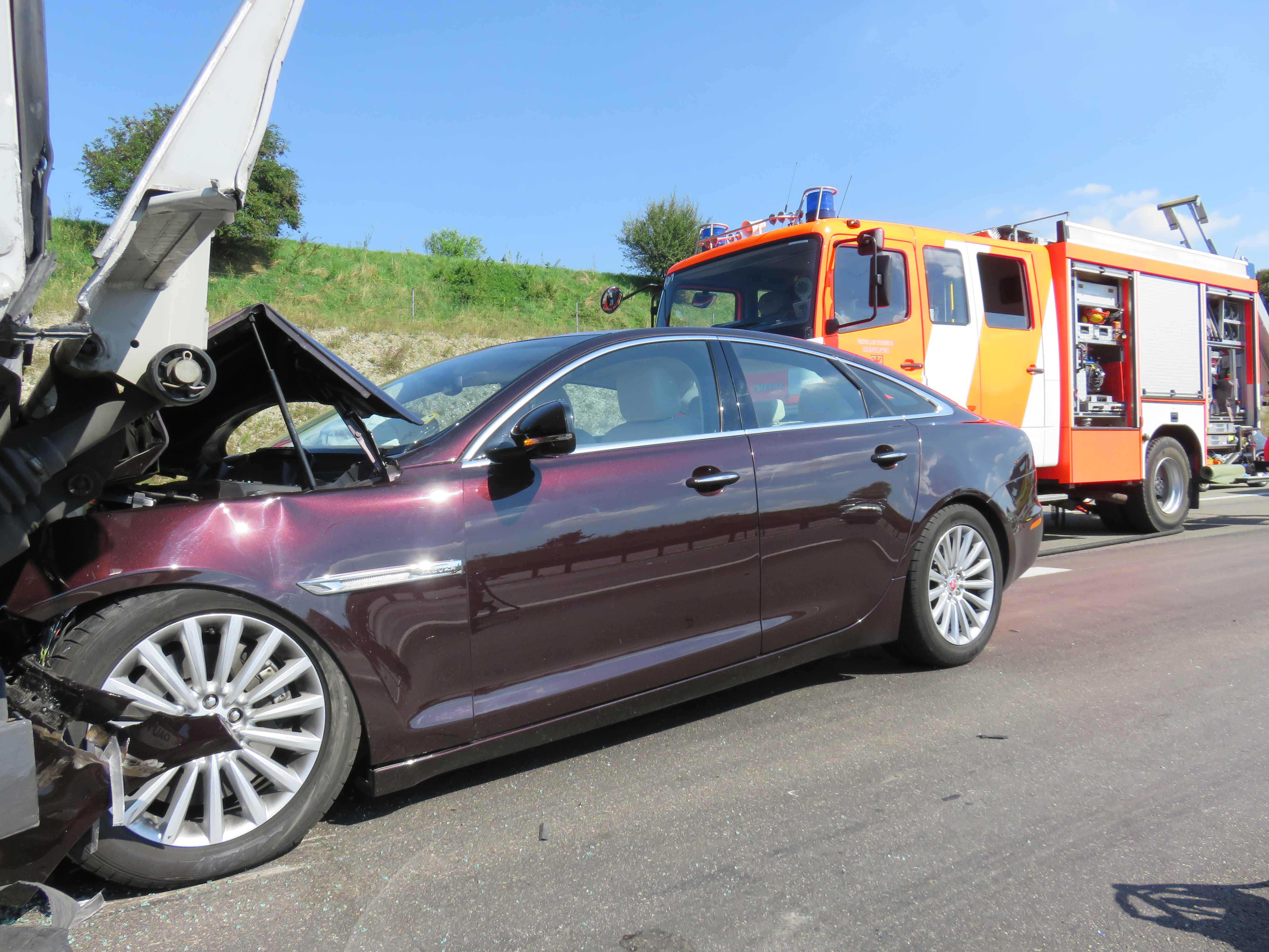 Aus dem Alarmstichwort Fahrbahnreinigung wurde ein Verkehrsunfall mit mehreren Beteiligten. Insgesamt waren bei dem Zusammenstoß 3 LKWs und 2 PKWs miteinander kollidiert. Durch den Zusammenstoß wurden drei Personen leicht bis mittelschwer verletzt. Die Verletzten wurden vom Rettungsdienst versorgt; hierbei unterstützte anfangs ein Teil unserer Kräfte den Rettungsdienst.