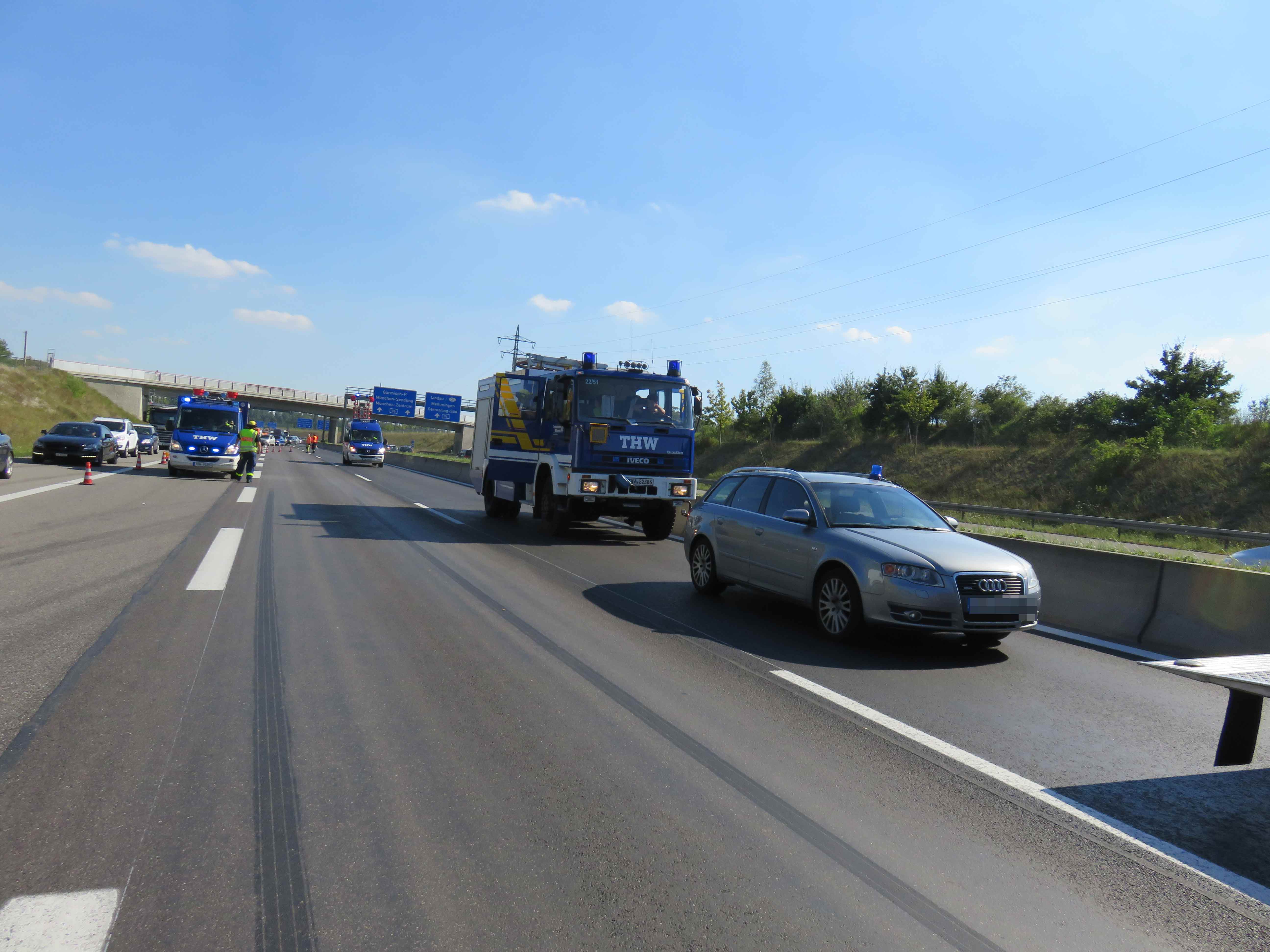 Bei den anschließenden Aufräumarbeiten und der Reinigung der Fahrbahn wurden wir von der Autobahnmeisterei und dem THW unterstützt. Die Ladung eines verunfallten LKW´s wurde mit Hilfe der Kollegen vom THW umgeladen.