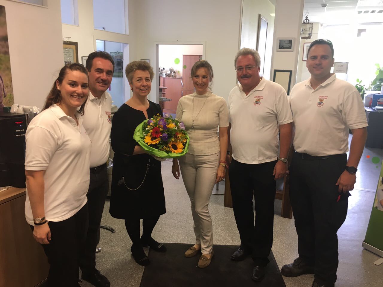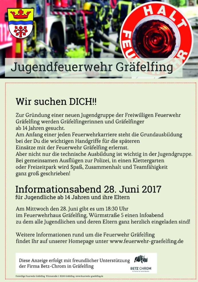 Wir bedanken uns ganz herzlich bei Frau Betz der Firma Betz Chrom, dass Sie uns wieder mit einer großen Infoanzeige für unsere neue Jugendgruppe unterstützt hat. Dies ist keine Selbstverständlichkeit und wir freuen uns, dass wir so öffentlich um neue Mitglieder werben konnten. Am Samstag übergaben unser 1. Kommandant Markus Fuchs, Vorstand Gerhard Fuchs, ehemaliger Jugendwart Thomas Hickel und neue Jugendwartin Alexandra Fuchs einen Blumenstrauß.