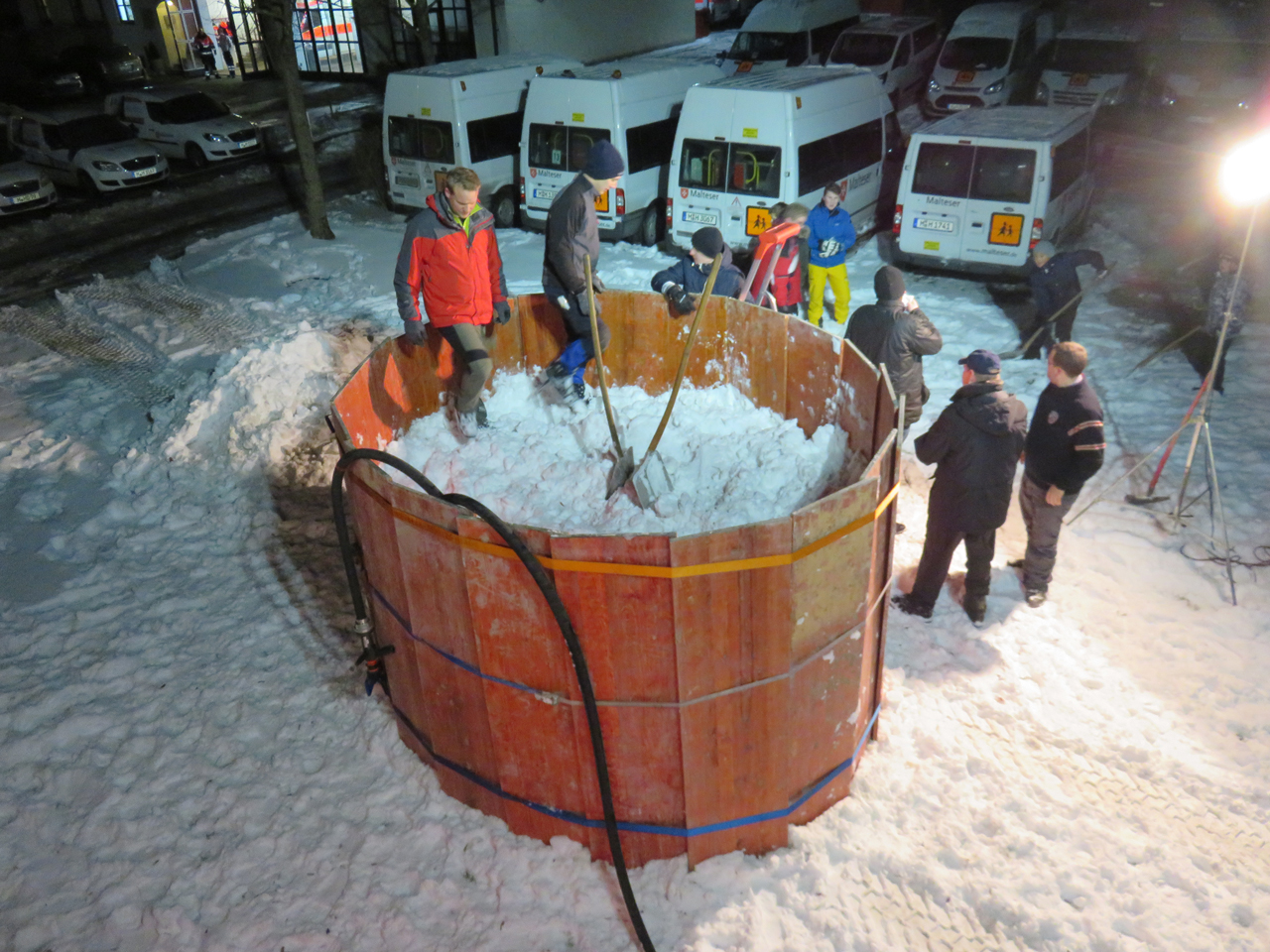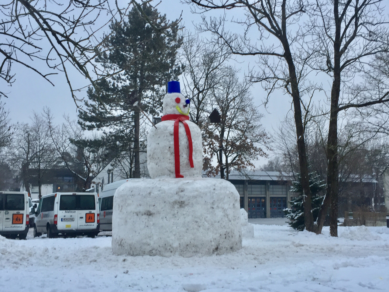 Die schneereichen Tage veranlassten uns, dass wir am 10. Januar, eine Idee umsetzten, die ein jedes Kinderherz höher schlagen lassen. Es sollte nicht nur ein handelsüblicher Schneemann werden. Mit diversen Hilfsmitteln haben die Feuerwehrkameraden einen überdimensionalen Schneemann kreiert. Er ist knapp 5 Meter hoch und dürfte damit in Gräfelfing und Umgebung der größte Schneemann sein. Für einen jeden, der hier vorbeikommt, steht er für alle gut sichtbar an der Bahnhofstraße und wacht dabei über unser Gerätehaus. Etwa 20 fleissige Kameraden benötigten für den Bau fast fünfeinhalb Stunden Zeit um diesen, wenn auch nur vorübergehenden Eyecatcher, entstehen zu lassen.
