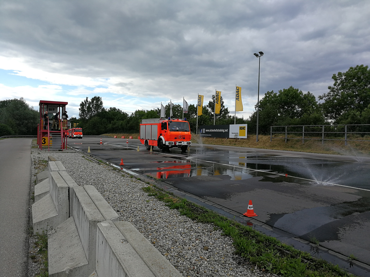 Für einen Teil unserer Maschinisten ging es am Samstag mit Kameraden aus Planegg nach Augsburg zum Fahrsicherheitstraining auf das Gelände vom ADAC. Hierbei wurden verschiedene Übungen absolviert, wie bspw. Bremsen und Ausweichen bei einem Hindernis auf nasser Fahrbahn. Für uns ist es wichtig, dass wir uns in allen Bereichen schulen lassen, damit wir bestmöglich für den Ernstfall vorbereitet sind.