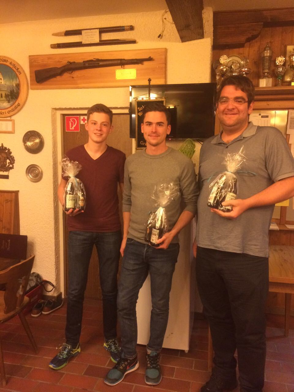 Die Schützengesellschaft Würmtaler I Gräfelfing hat dieses Jahr wieder für alle Vereine ein „Sauschießen“ veranstaltet. An zwei Abenden hatte man die Gelegenheit mit einem Luftgewehr 10 Mal über eine Distanz von 10 Metern zu schießen. Gewertet wird jeweils der beste Schuss (Teiler). Für jeden Teilnehmer gibt es einen Preis. Entsprechend der Platzierungen gibt es eine Mannschaftswertung und Einzelwertungen. Dieses Jahr nahmen 8 Kameraden daran teil und wir waren die 3. stärkste Mannschaft.
