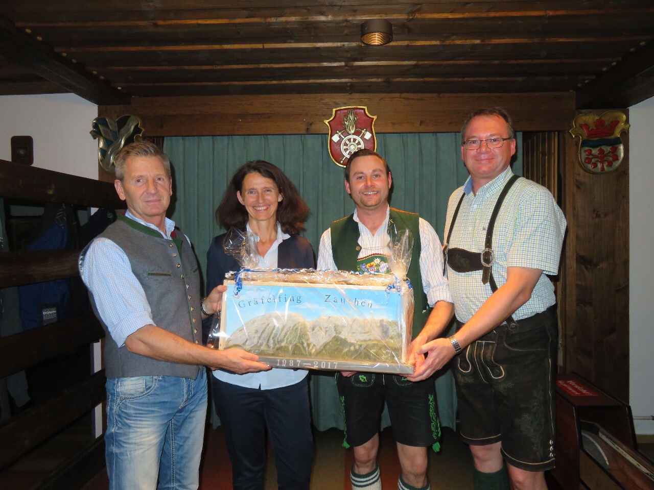An dem Oktober Wochenende kamen 18 Zauchner Kameraden zum Gegenbesuch nach Gräfelfing. Am Freitag veranstalteten wir einen gemütlichen Kameradschaftsabend, bei dem das 30-jährige Bestehen der Partnerschaft gemeinschaftlich gefeiert wurde. Hierbei erhielten wir von der Feuerwehr Zauchen ein von Hand geschnitztes Relieve des Grimmings als Geschenk, das unter anderem vom Kommandanten Christian Demmerer gefertigt wurde.