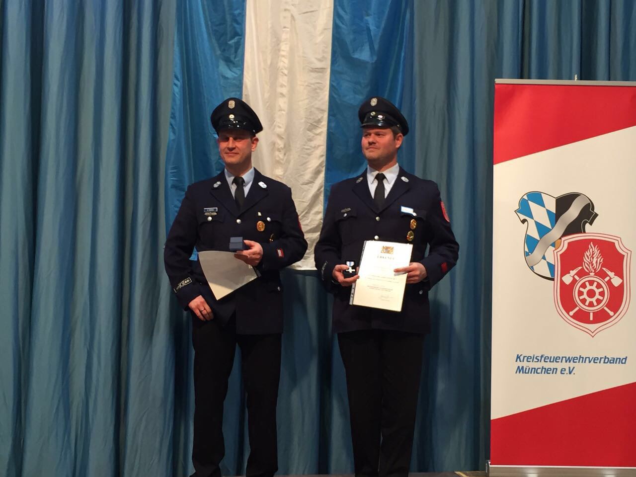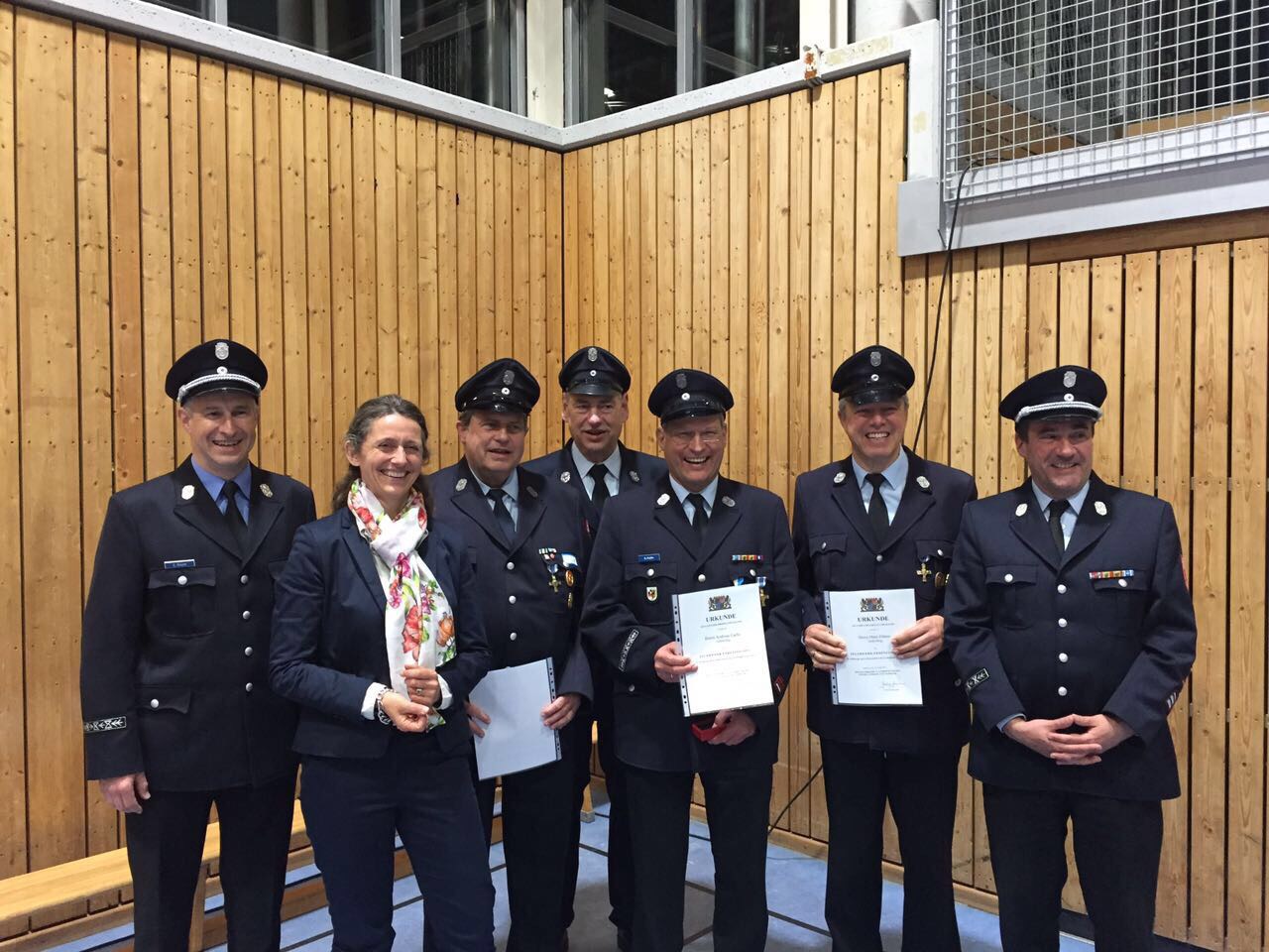 In Sauerlach fand der diesjährige Kreisfeuerwehrtag am Freitag, den 28. April 2017, statt. Etwa 700 Angehörige der Landkreisfeuerwehren und Ehrengäste waren zu Gast in der Mehrzweckhalle. Heuer wurden etliche Gräfelfinger Kameraden für ihre lange aktive Dienstzeit ausgezeichnet. Christian Köhler und Markus Feuerer wurden für 25 Dienstjahre geehrt. Für sage und schreibe 40 Jahre Feuerwehrdienst wurden Stefan Bayer, Andreas Fuchs, Hans Führer und Gerhard Regensburger geehrt. Herzlichen Glückwunsch zur Auszeichnung, vielen Dank für Euer Engagement und auf viele weitere Jahre!