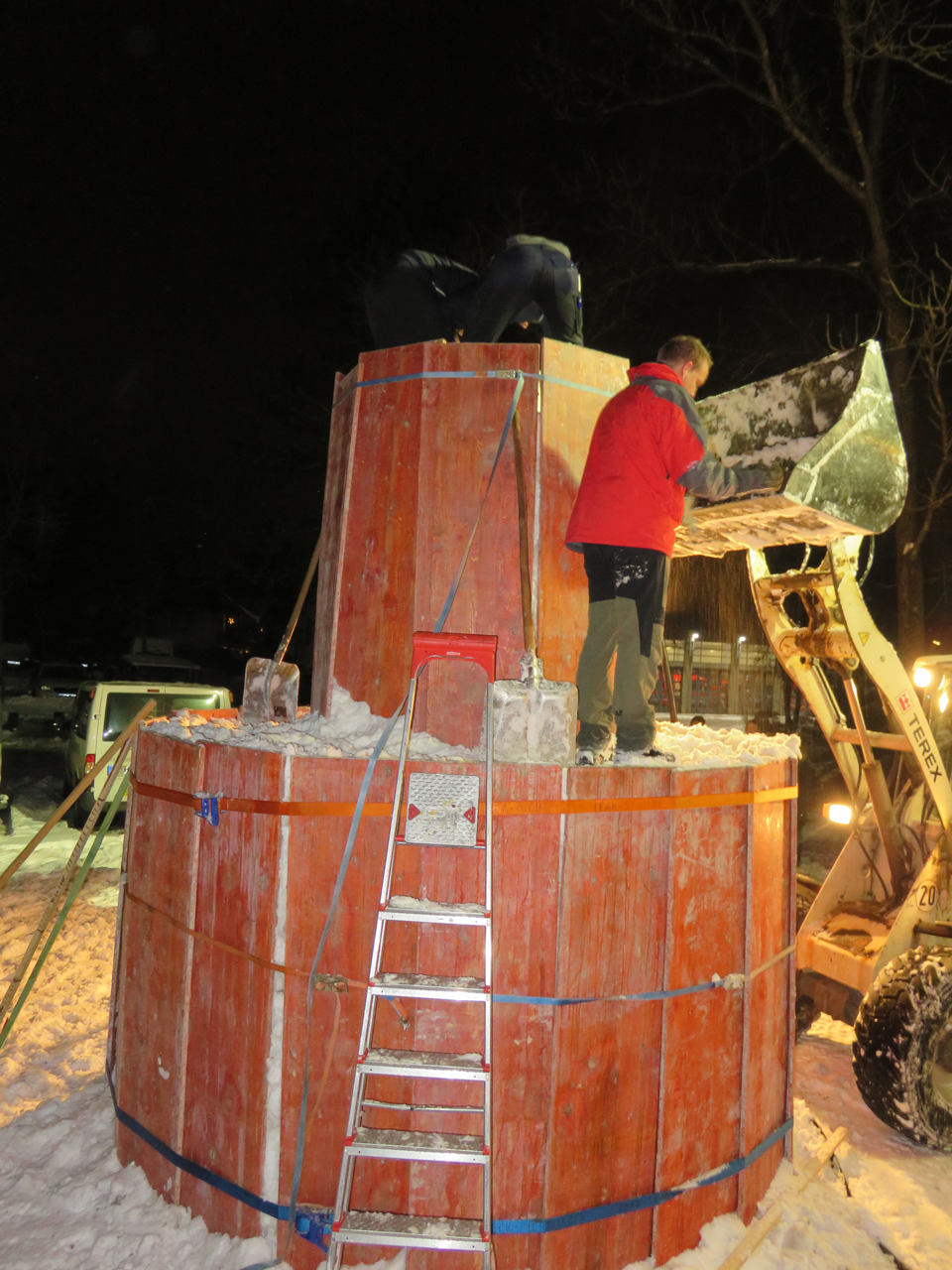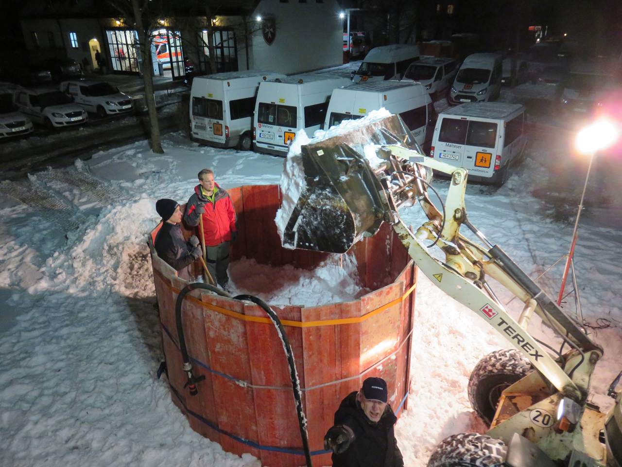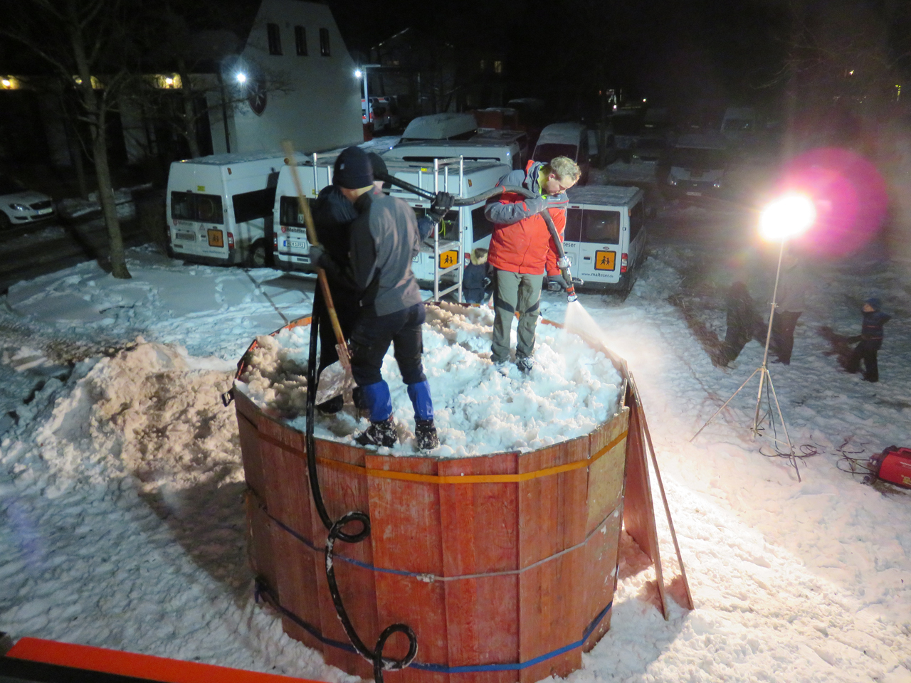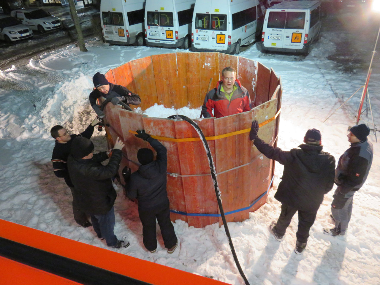 Die schneereichen Tage veranlassten uns, dass wir am 10. Januar, eine Idee umsetzten, die ein jedes Kinderherz höher schlagen lassen. Es sollte nicht nur ein handelsüblicher Schneemann werden. Mit diversen Hilfsmitteln haben die Feuerwehrkameraden einen überdimensionalen Schneemann kreiert. Er ist knapp 5 Meter hoch und dürfte damit in Gräfelfing und Umgebung der größte Schneemann sein. Für einen jeden, der hier vorbeikommt, steht er für alle gut sichtbar an der Bahnhofstraße und wacht dabei über unser Gerätehaus. Etwa 20 fleissige Kameraden benötigten für den Bau fast fünfeinhalb Stunden Zeit um diesen, wenn auch nur vorübergehenden Eyecatcher, entstehen zu lassen.
