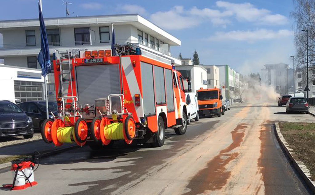 Auch dieses Wochenende war die Feuerwehr Gräfelfing bei 2 Einsätzen gefordert. Am Samstag wurden die Gräfelfinger Floriansjünger um kurz vor 12 Uhr ins Gewerbegebiet zu einer Ölspur alarmiert. In Folge eines geplatzten Hydraulikschlauchs hatte ein LKW Öl verloren. Die 18 eingesetzten Kräfte streuten das ausgelaufene Öl ab, welches anschließend von der Kehrmaschine der Gemeinde Gräfelfing aufgenommen wurde.